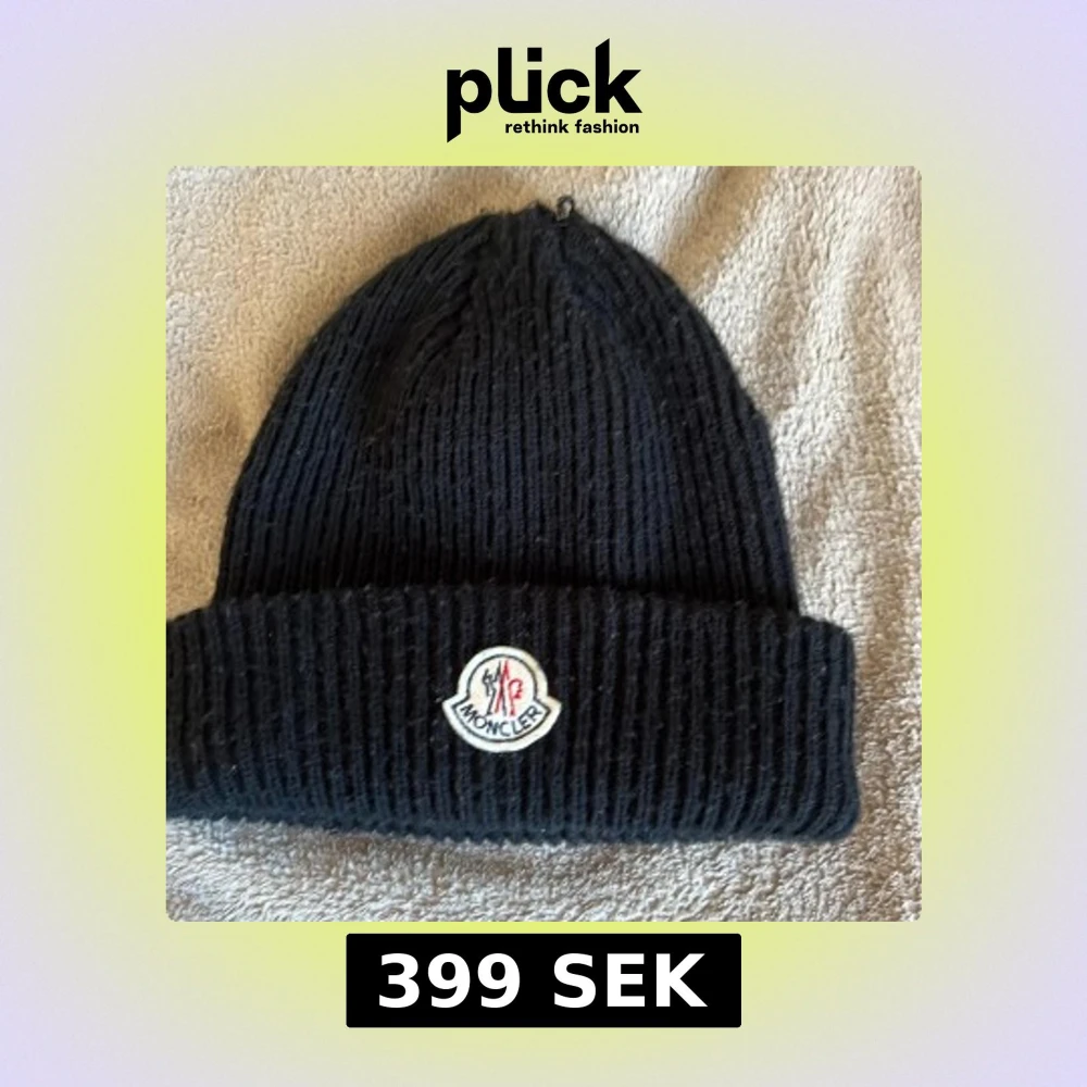 Svart ribbstickad mössa från Moncler med uppvikt kant och klassisk Moncler-logga framtill. Mössan är tillverkad i mjukt ullmaterial och har en enkel, stilren design som passar perfekt till kalla dagar.