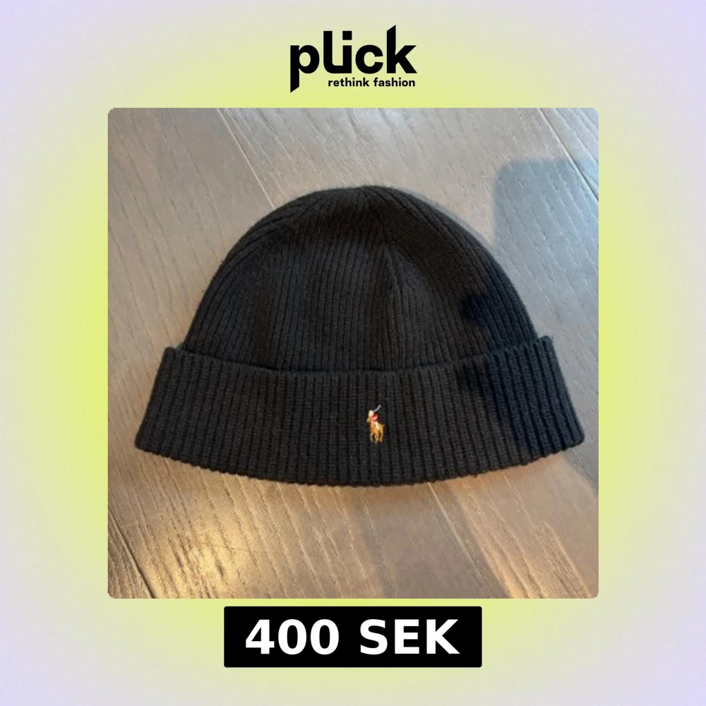 Svart ribbstickad mössa från Polo Ralph Lauren med klassisk uppvikt kant och broderad logga framtill. Tillverkad i 80% ull och 20% återvunnen nylon, perfekt för kyliga dagar. Enkel och stilren design som funkar till det mesta.