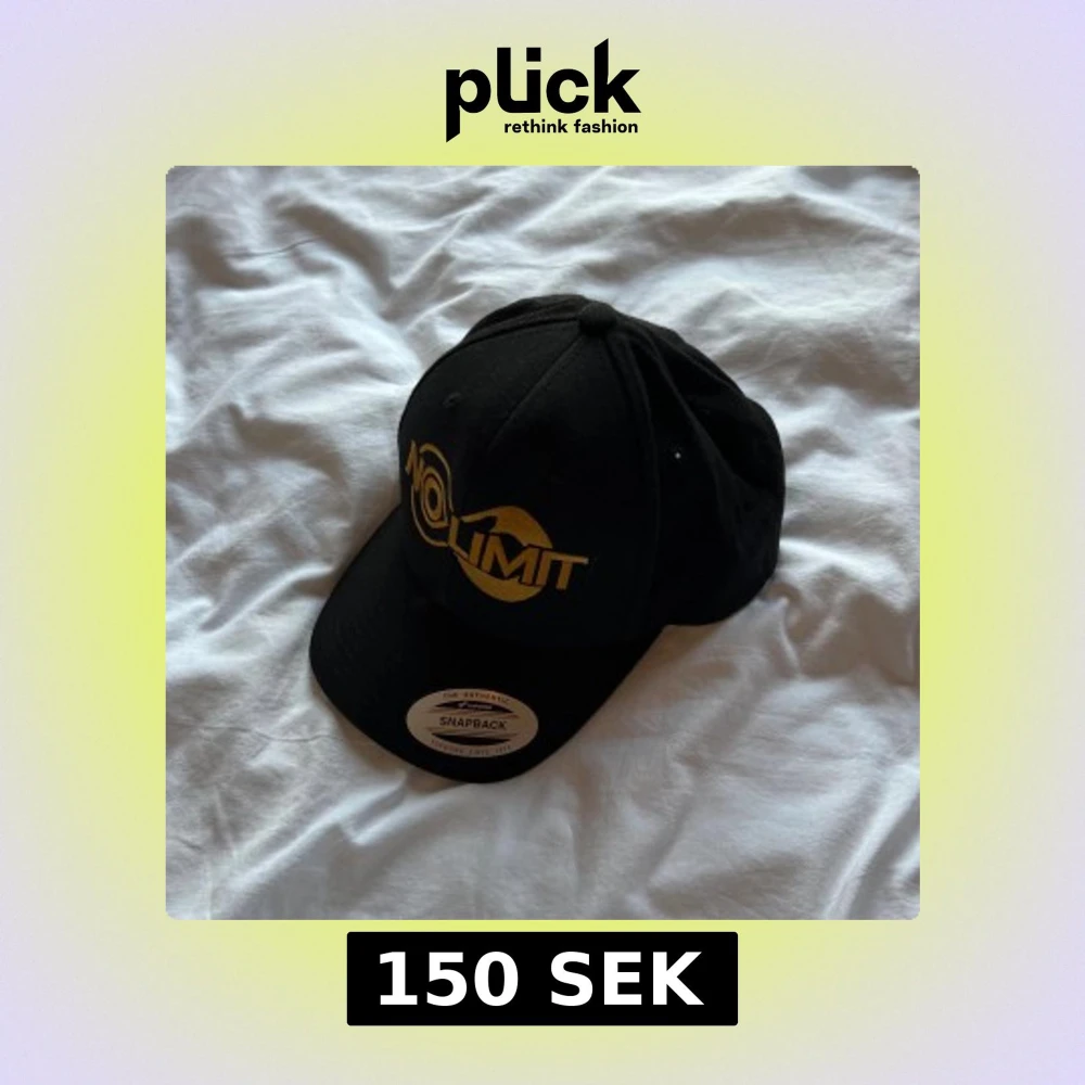 Svart snapback keps från Yupoong med gul No Limit-logga framtill. Klassisk modell med böjd skärm och justerbar baksida. Tillverkad i 80% akryl och 20% ull. Perfekt för dig som vill sticka ut med en cool streetstyle-accessoar.