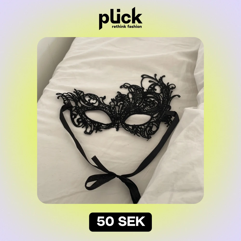 Säljer en elegant svart mask i spets med intrikata detaljer. Perfekt för maskerad eller fest! Den har band för att knyta runt huvudet och ger en mystisk look. Passar perfekt till en kväll med glamour och mystik. (Aldrig använd, köpt för 99kr på partyland)
