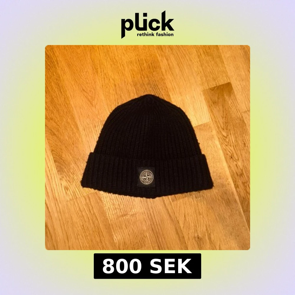 Säljer min svarta stickade Stone Island mössa