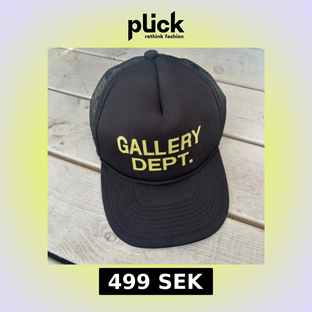 Snygg svart truckerkeps från Gallery Dept. med mesh på baksidan och justerbar snapback. Framsidan har gul text med loggan 'GALLERY DEPT.'. Perfekt för dig som vill ha en cool och streetig look med statement. Materialet är polyester och syntet.