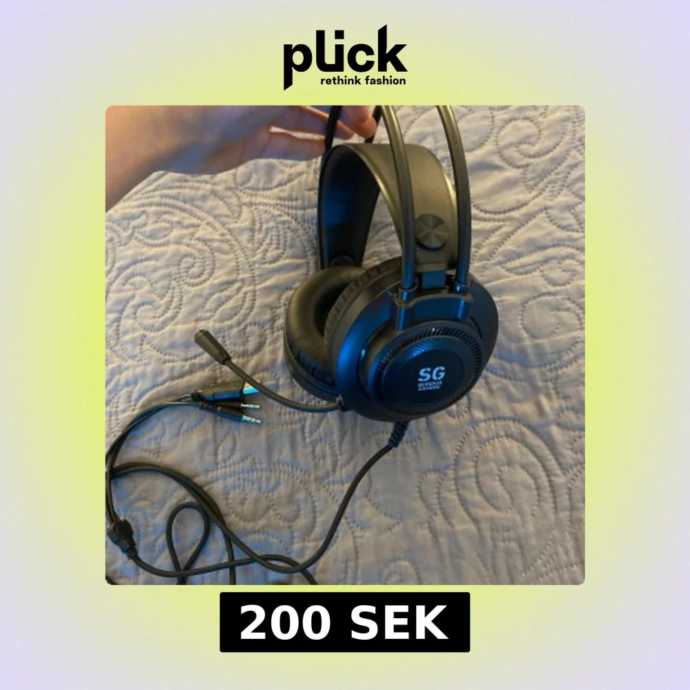 Säljer ett par svarta hörlurar från SG med vadderade öronkåpor och justerbart huvudband. Hörlurarna har en mikrofon och ansluts med två 3,5 mm ljudkablar. Perfekt för gaming eller musiklyssning. aldrig använt
