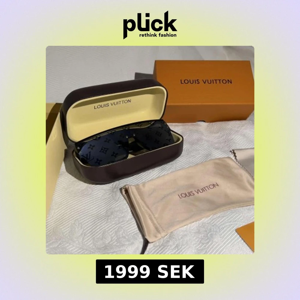 Snygga svarta solglasögon från Louis Vuitton med breda skalmar och LV-monogram på glasen. Glasögonen har en modern, rektangulär form och levereras med originalfodral och putsduk. Perfekta för dig som vill sticka ut med en lyxig accessoar.