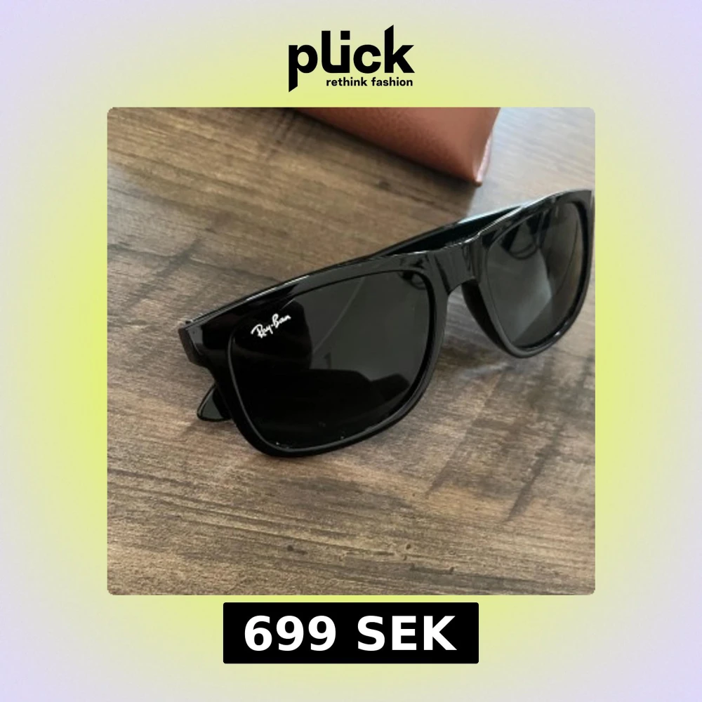 Klassiska svarta Ray-Ban Wayfarer solglasögon med glansig finish och mörka glas. Snygg fyrkantig form och diskret Ray-Ban-logga på bågen. Kommer med original brunt fodral. Perfekta för en cool och tidlös look.