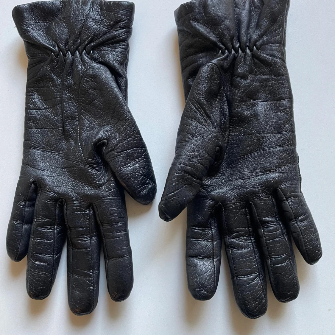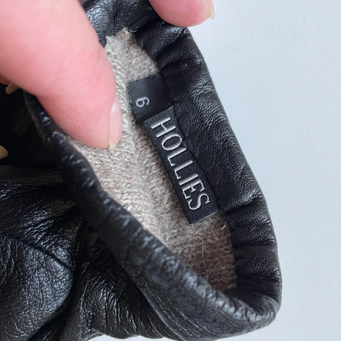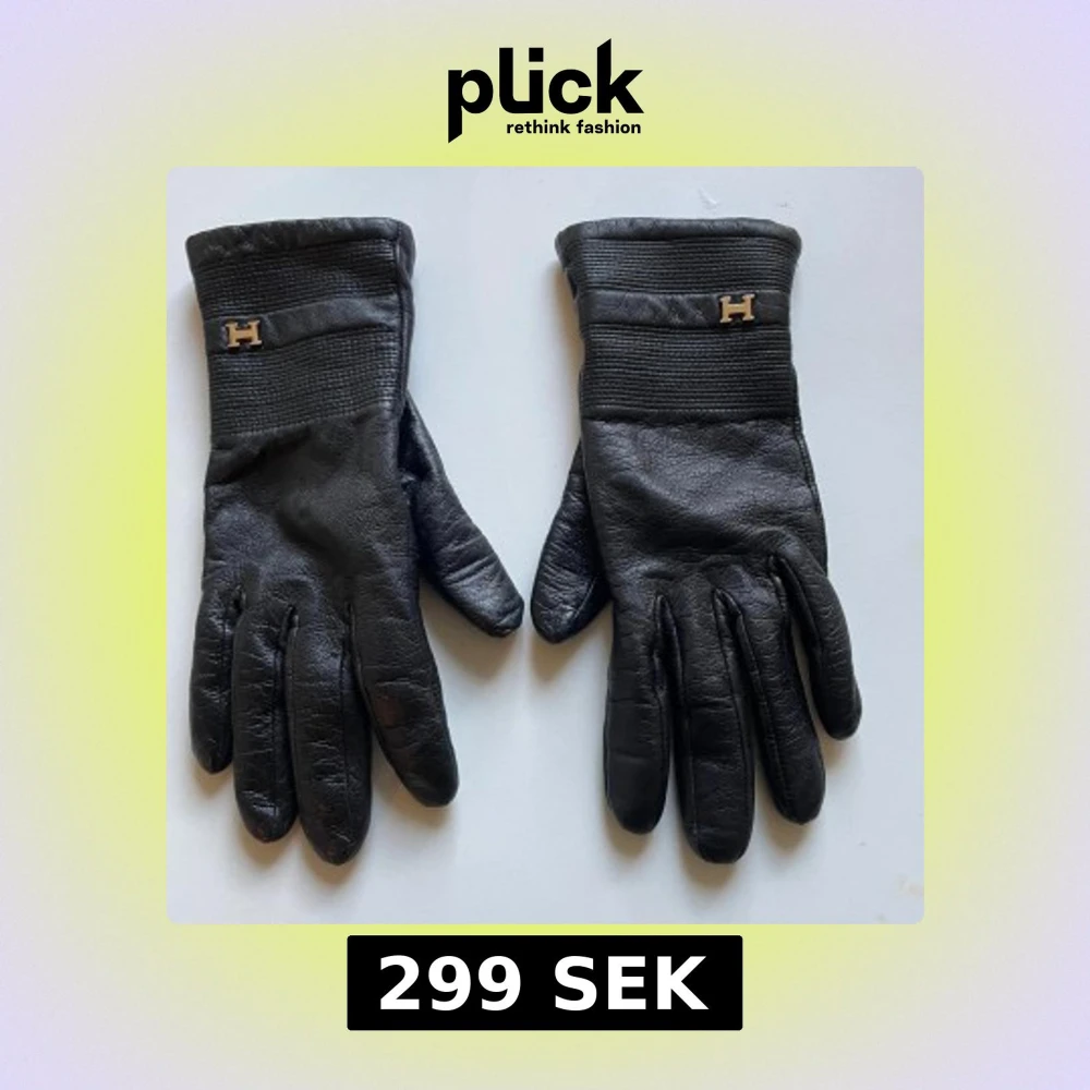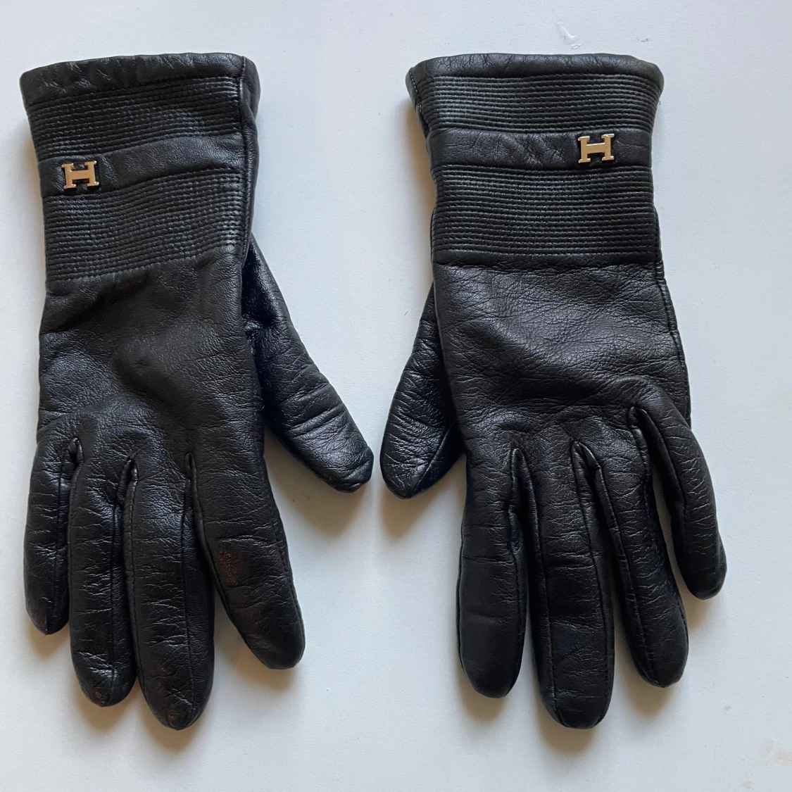 Svarta skinnhandskar från Hollies i storlek XS (6). Handskarna har ett diskret H-emblem i metall vid handleden och ribbade detaljer upptill. Insidan är fodrad i mjukt material för extra värme. Perfekta för kalla dagar när du vill ha en stilren look.