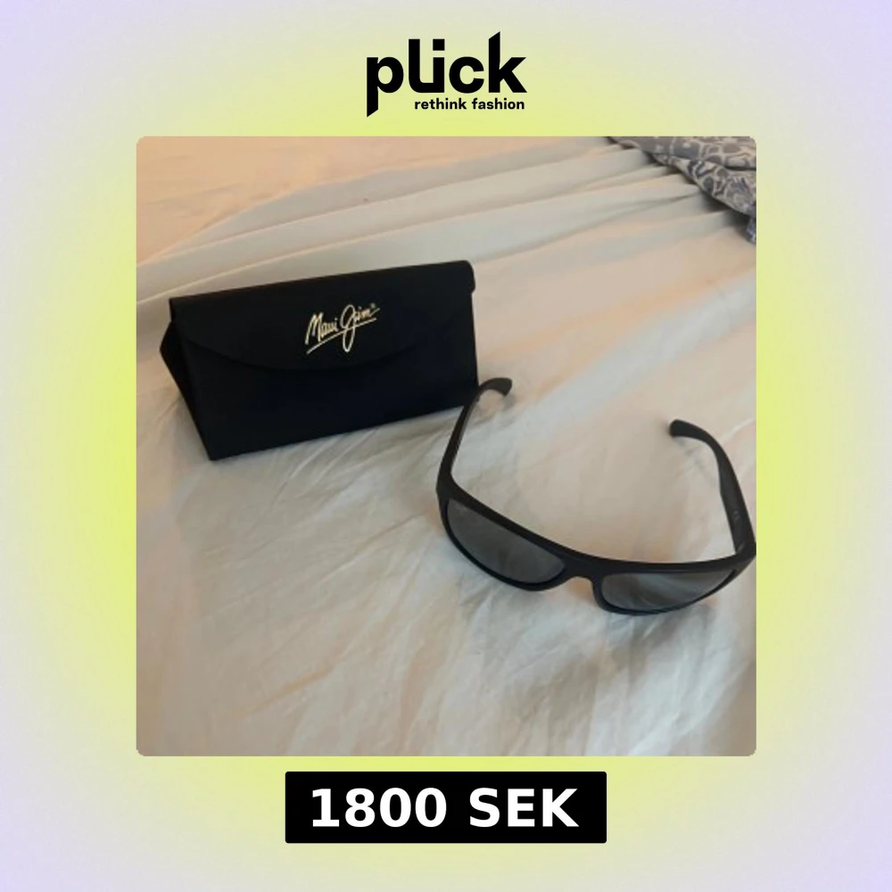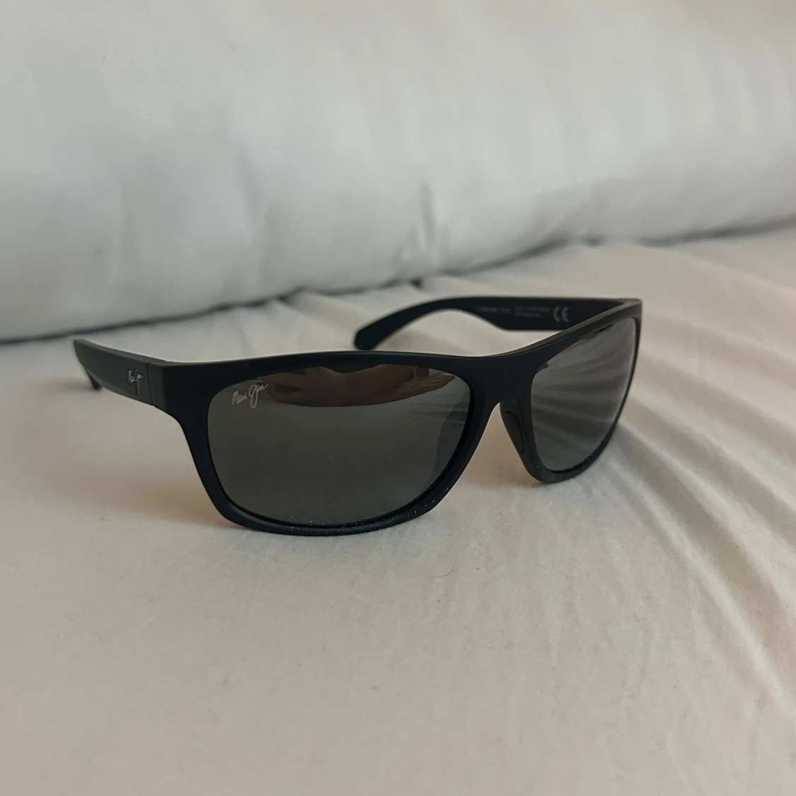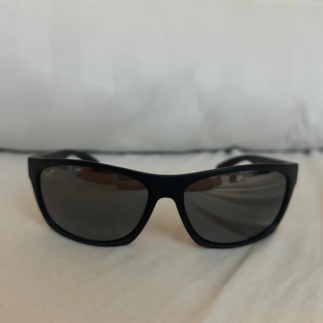 Snygga svarta solglasögon från Maui Jim, modell Tumbleland. De har en sportig design med breda skalmar och mörka glas. Perfekta för soliga dagar och tillverkade i Italien. Kommer med originalfodral. Har använd ett par gånger men gillade inte den..