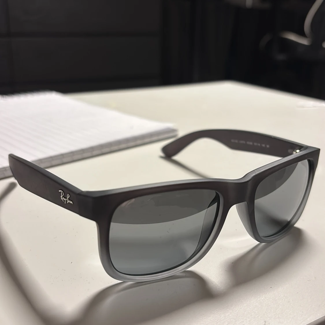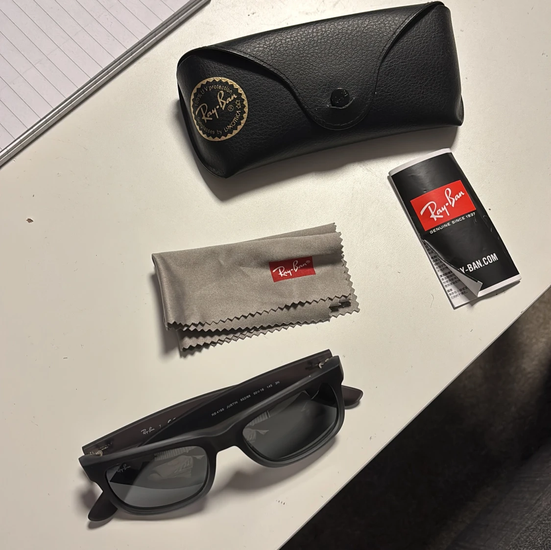 Säljer nu ett par Rey Ban Justin RB4165. Solglasögonen är köpta i slutet på förra sommaren och knappt använda, de är i ett väldigt gott skick utan något slitage. Hör gärna av dig vid frågor eller minsta intresse.😊😊