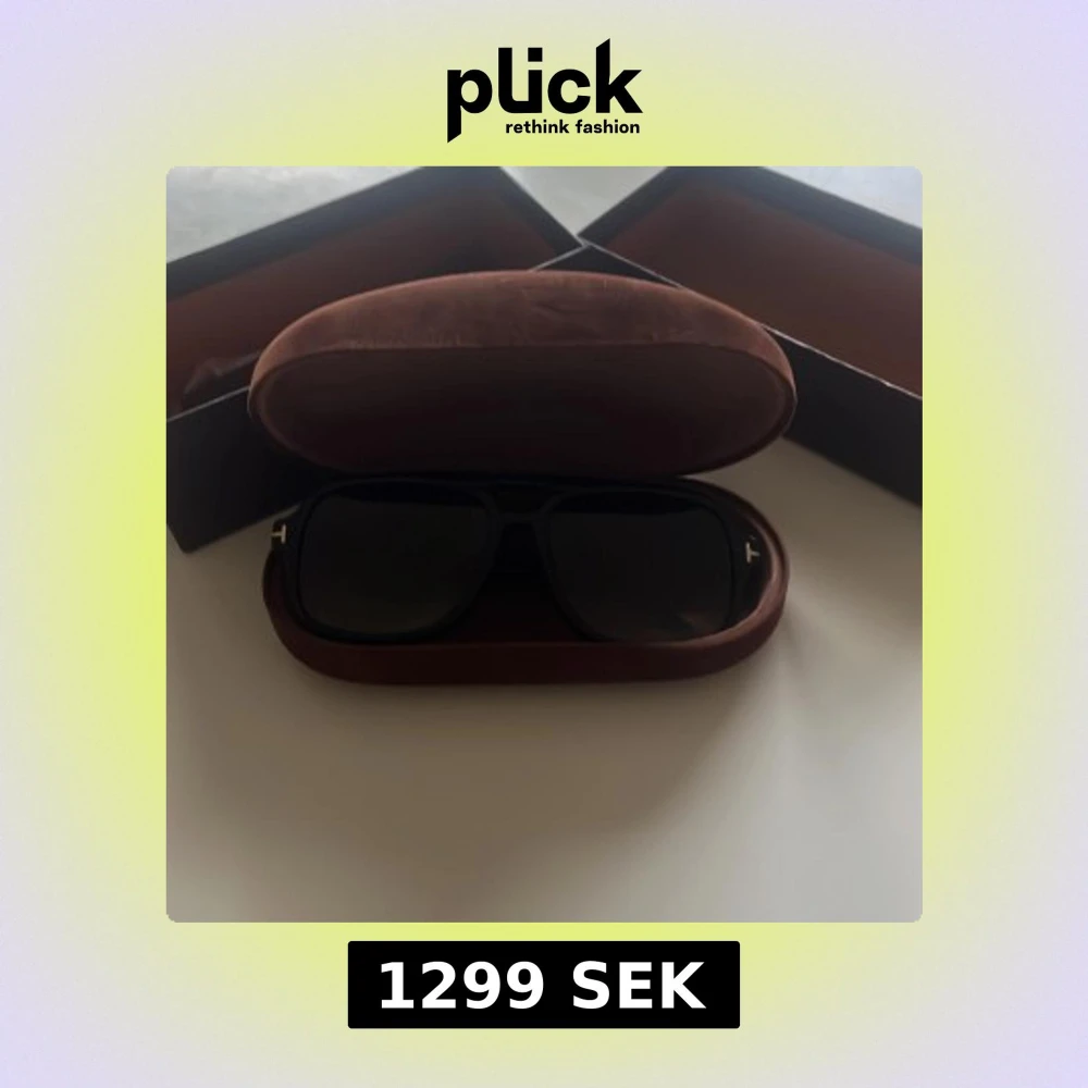 Snygga svarta solglasögon från Tom Ford med klassisk fyrkantig form och diskreta gulddetaljer vid skalmarna. Kommer i original brun sammetsask och box. Perfekta för dig som vill ha en stilren och lyxig look.