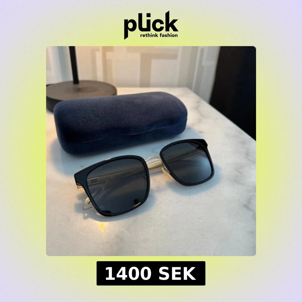 Snygga svarta solglasögon från Gucci med fyrkantiga bågar och tunna guldfärgade skalmar. Kommer med originalfodral och putsduk, samt de papper som medföljde solglasögonen. Inköpta våren 2022 men knappt använda då dem inte riktigt passade min huvudform, så mest legat och samlat damm. Finns digitalt kvitto från Zalando som jag givetvis skickar med om önskat. Vid frågor eller om fler bilder önskas så finns jag i chatten! Sista bilden är från Zalandos hemsida, inköpta för ca 3 100kr.