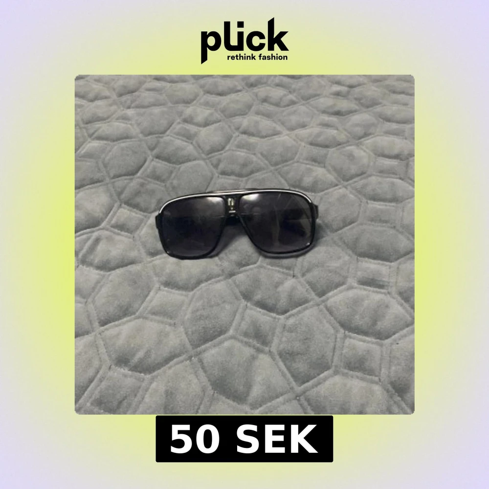 Snygga svarta solglasögon med bred båge och mörka glas. Klassisk och sportig design med markerad ram och raka skalmar. Perfekta för att ge en cool look och skydda ögonen mot solen.