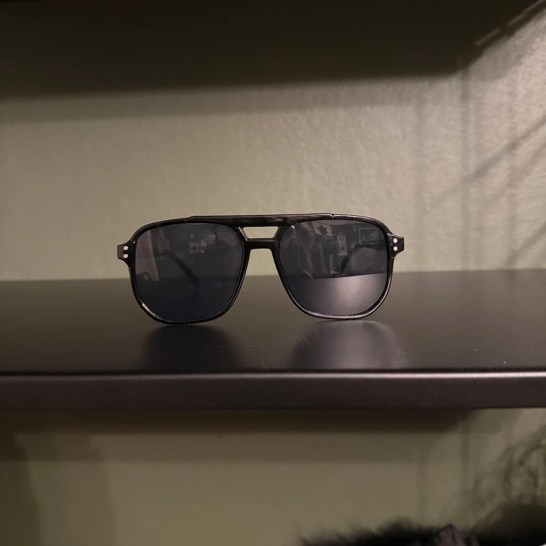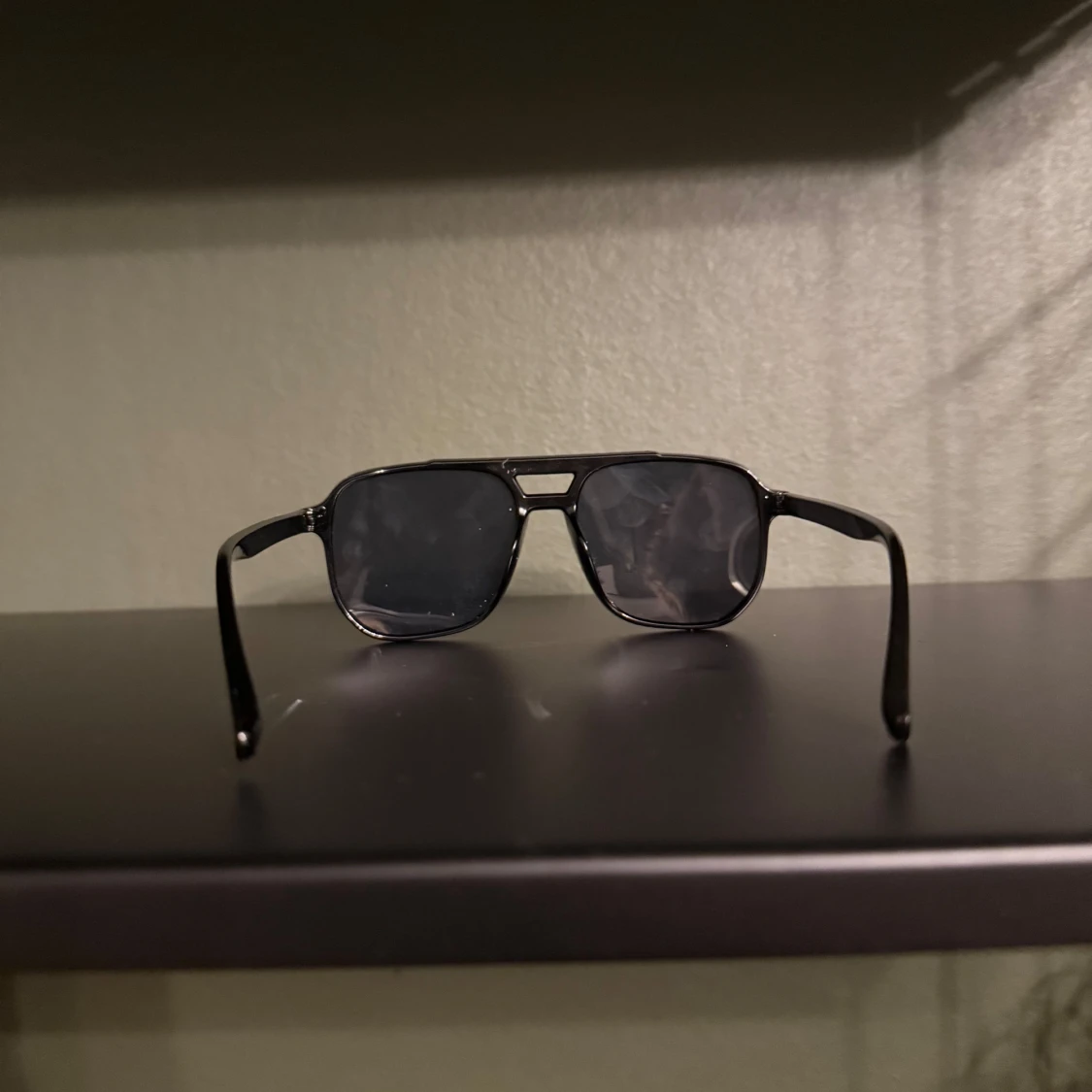 Snygga svarta solglasögon med en modern dubbel brygga och rektangulära linser. Perfekta för en stilren look. De har en klassisk design som passar de flesta ansikten och ger ett coolt intryck.