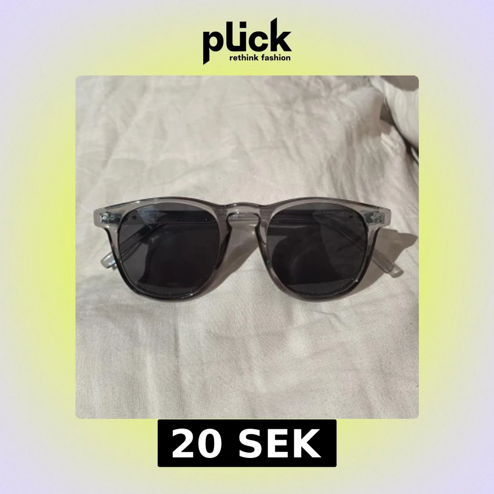 Snygga solglasögon med svarta glas och transparent grå båge. Klassisk, lite fyrkantig form som passar till de flesta stilar. Lätta och bekväma att bära, perfekta för soliga dagar.