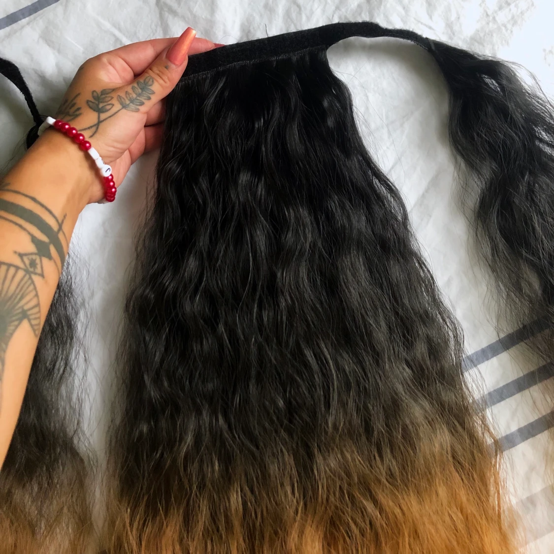 Syntetisk ponytail! Två stycken i samma färg, svart med brun ombre, 300kr styck! 55cm vågigt