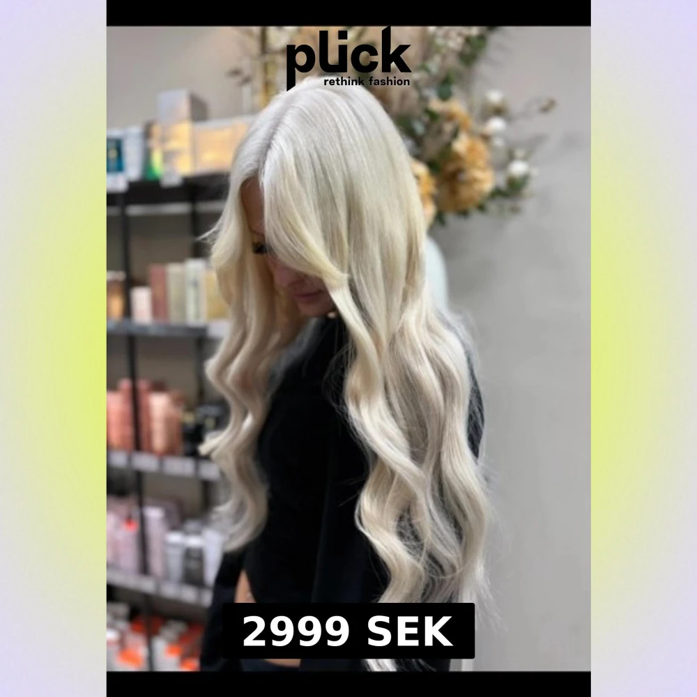 Säljer mina blonda tejp extensions, håret är väl omhändertaget med inpackningar och bra hårprodukter. Jag har satt i ny tejp i hela håret så det är klart. Håret är från en frisörsalong och är 60cm 100-110gr vet inte exakt. Vi har klippt upp håret vid ansiktet (det korta längst upp är mitt egna) syns inte så bra på bilden😊kan tänka mig sänka vid snabb affär