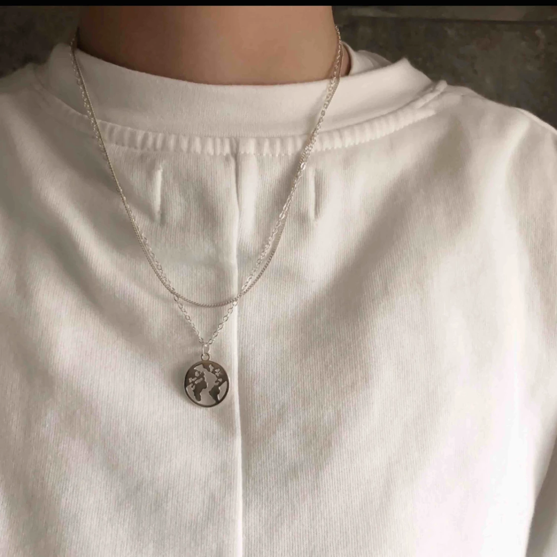 Hej! Vi är ett UF företag som säljer smycken för att uppmärksamma de miljöproblem som pågår. För varje sålt smycke kommer vi skänka 5kr till WWF’s akutinsamling för klimatet. Ovanför ser ni vårt halsband i silverfärg! 🌍