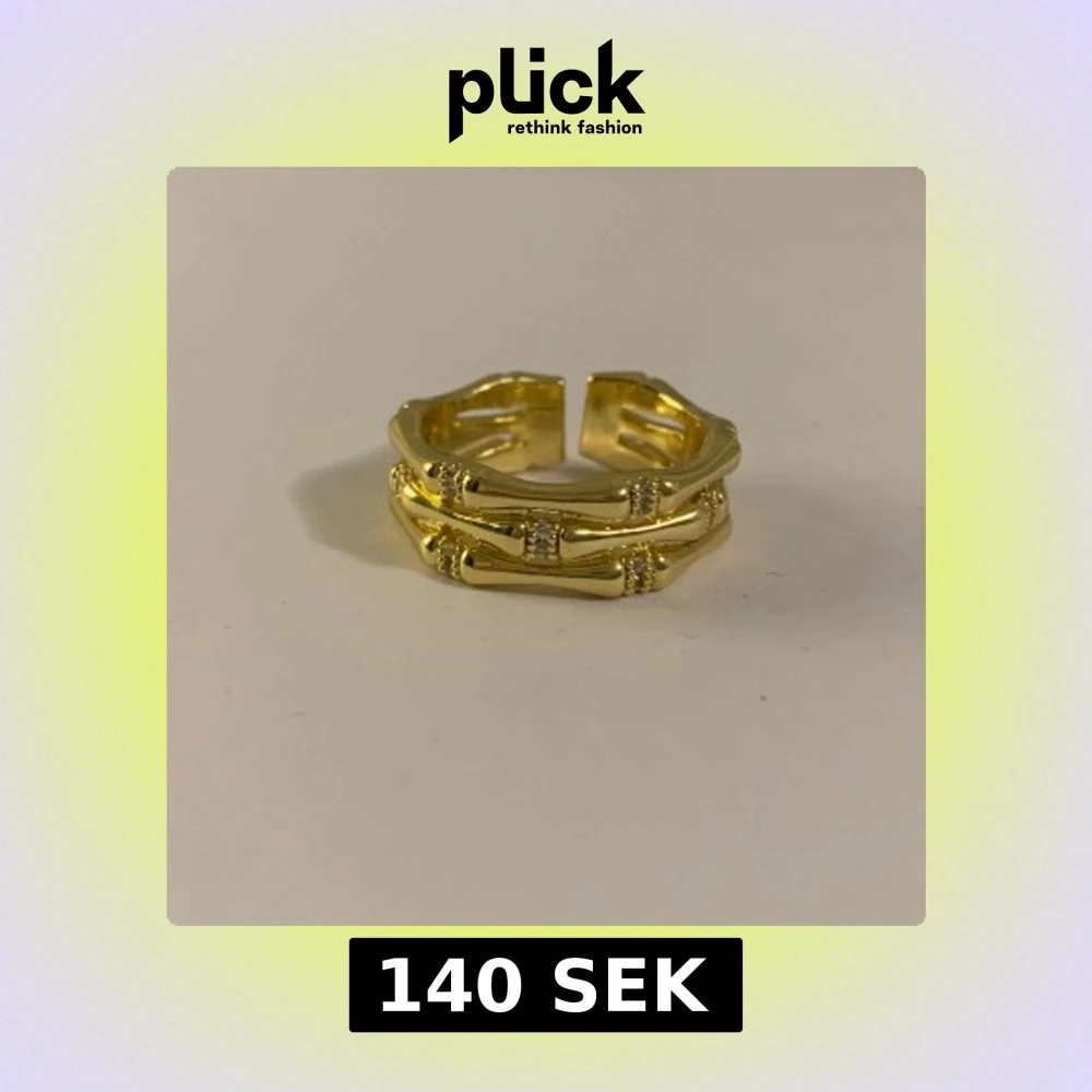 Snygg guldpläterad ring med ett unikt bambumönster. Ringen har en öppen design som gör den justerbar och bekväm att bära. Perfekt för att sätta en snygg touch till din outfit.