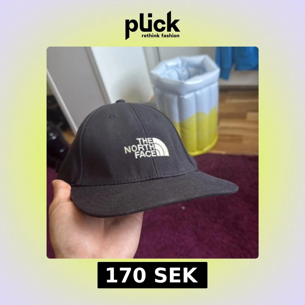Snygg svart keps från The North Face med klassisk böjd skärm och justerbar rem med metallspänne bak.