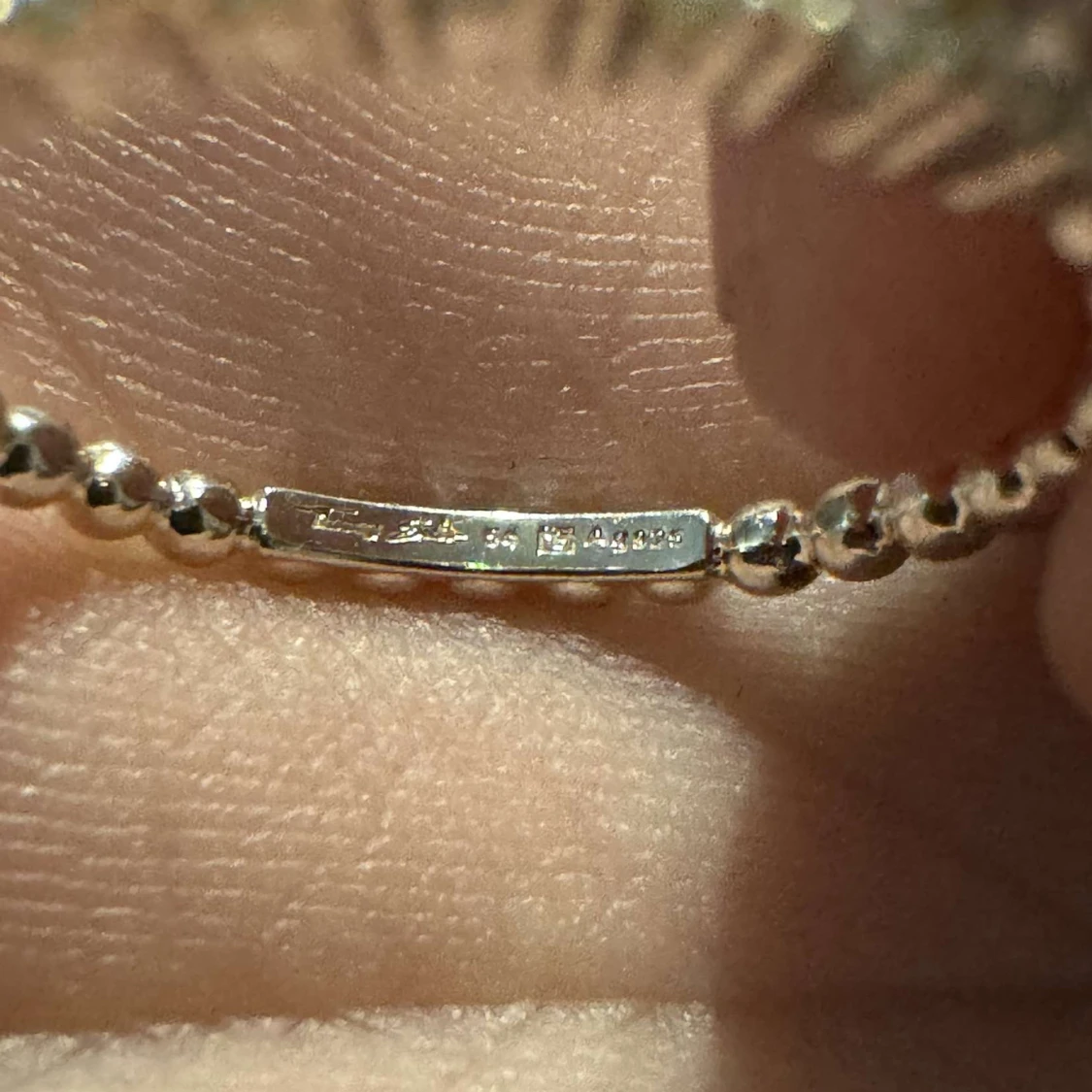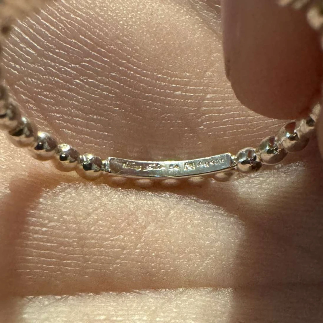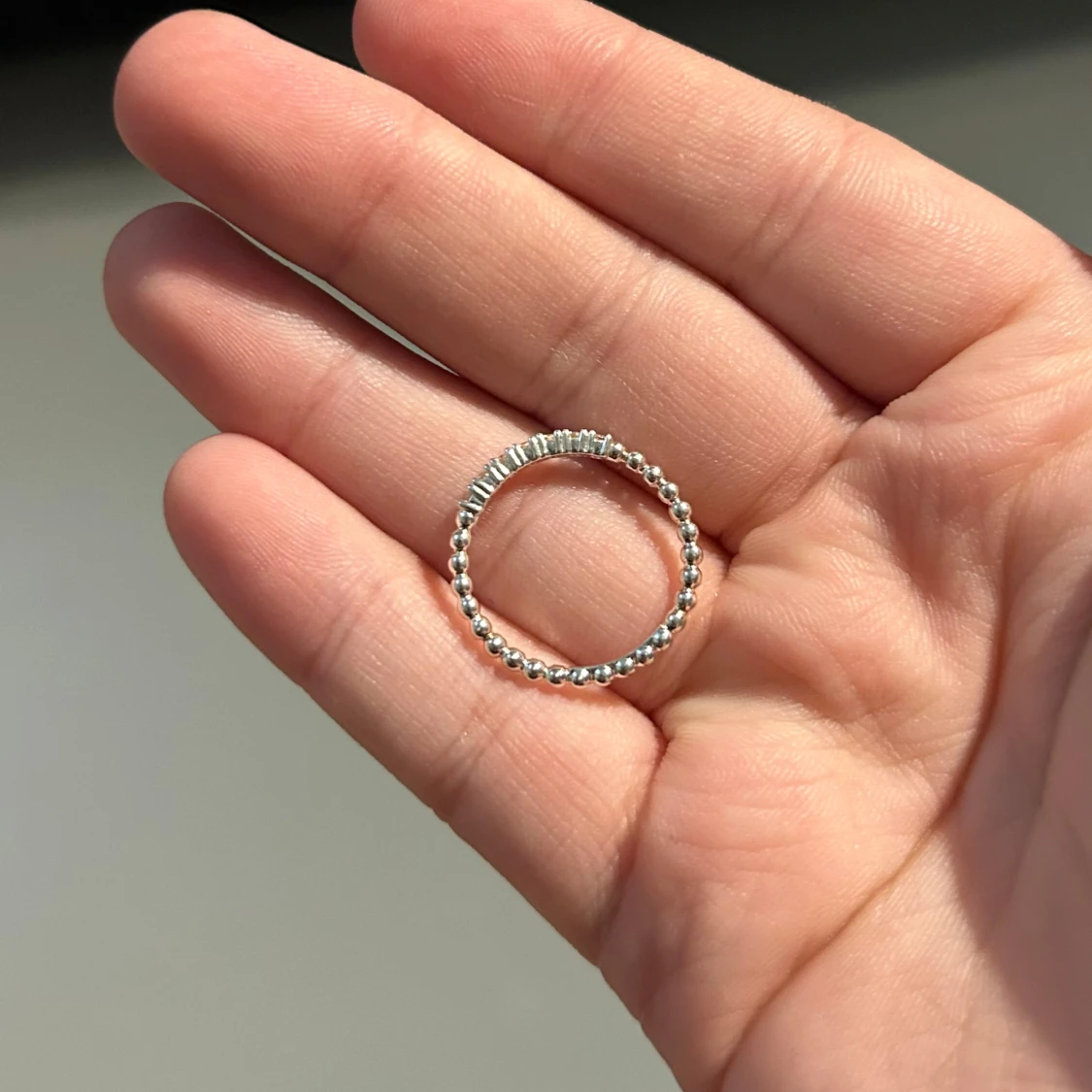 Elegant silverring från Thomas Sabo med en stilren design av små kulor runt hela ringen. Kommer i en snygg randig förpackning. Helt oanvänd då den var för liten för mig när jag fick den i 18års present. Den har enbart legat i sin förpackning. I storlek 54.