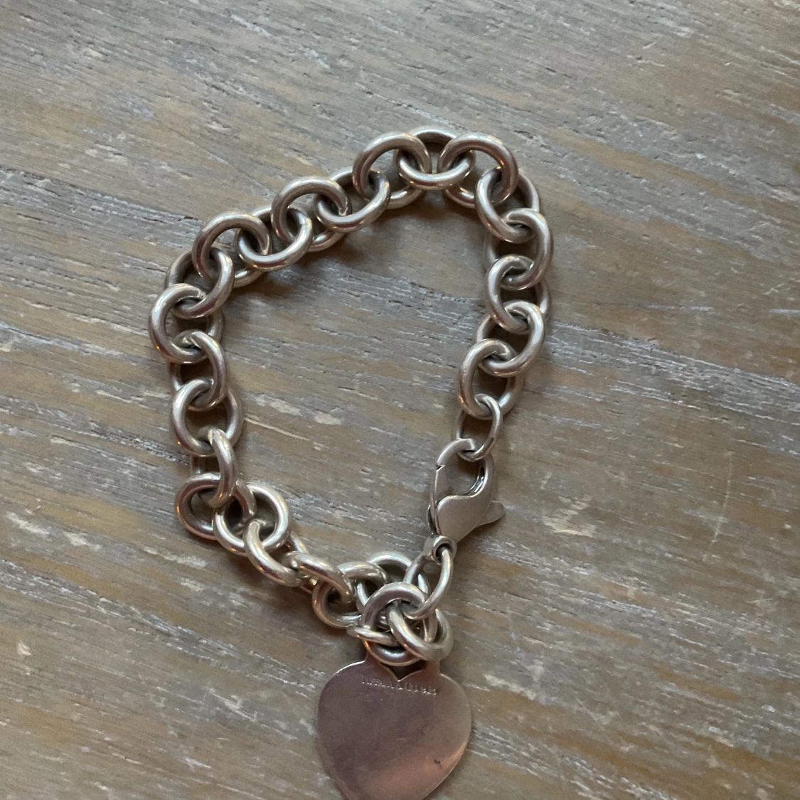 Snyggt och klassiskt silverarmband från Tiffany & Co med grova länkar och ett hjärtformat berlock. Armbandet har en rejäl karbinlås och berlocken är stämplad med Tiffany & Co 925. Perfekt för dig som gillar tidlös design och vill ha något som sticker ut. Äkta, det är den gamla versionen.