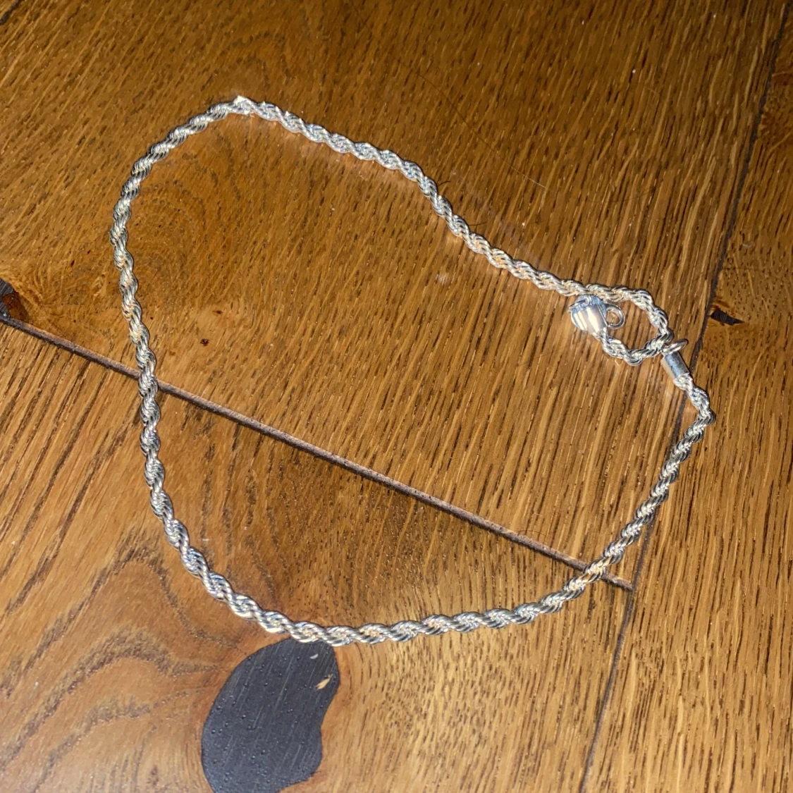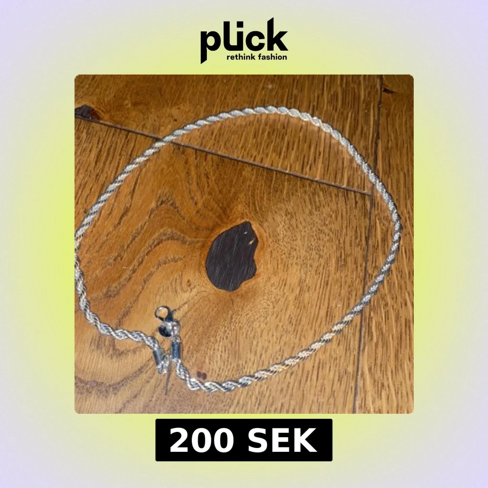 Säljer ett snyggt halsband med tvinnad kedja i silverfärg. Kedjan är ganska tjock och har en klassisk karbinhake. Perfekt för dig som gillar stilrena och tidlösa smycken med lite extra edge.