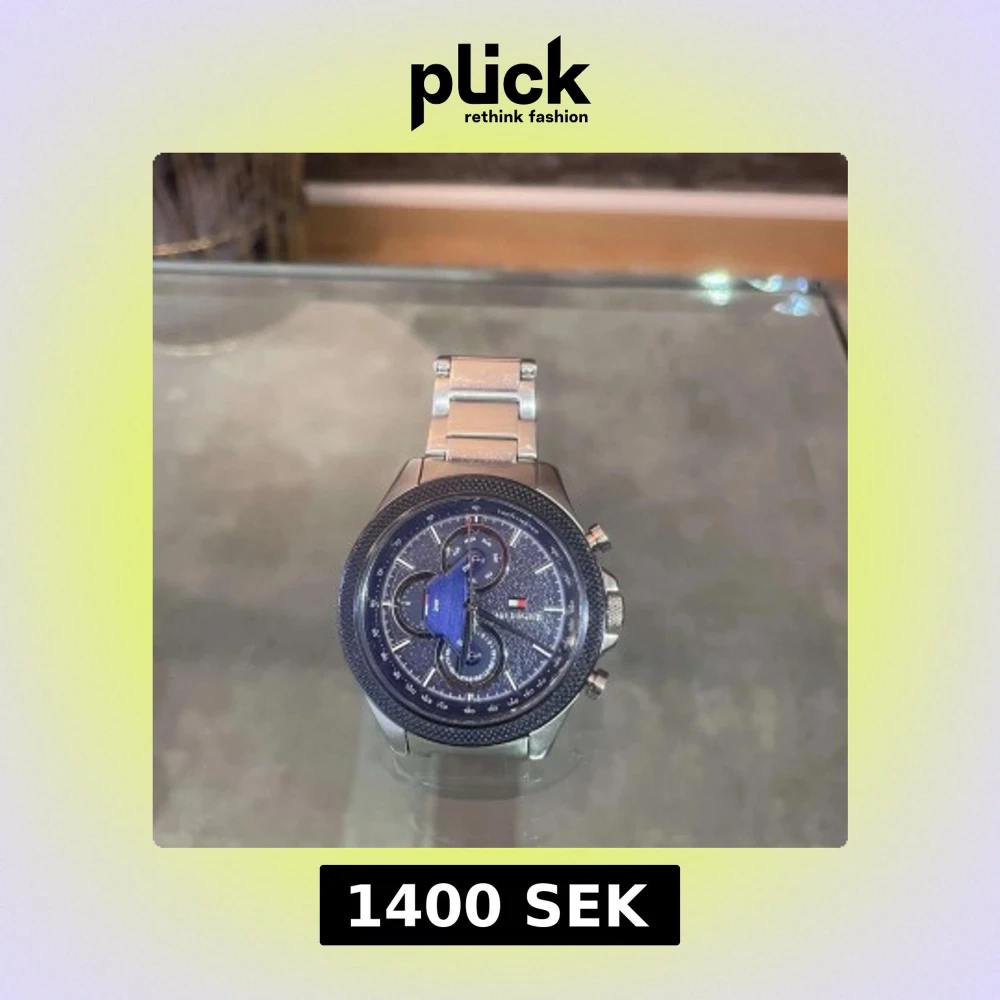 Stilren klocka från Tommy Hilfiger med silverfärgad länk i metall och mörkblå urtavla. Klockan har flera små urtavlor för dag och datum, samt tydliga vita markeringar och logga. Perfekt accessoar för dig som gillar klassisk design med sportig touch.