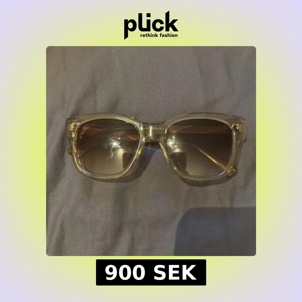 Snygga transparenta solglasögon från Chimi. Det tillkommer ett vit fodral. Färgen är Ercu och modell 07. Skalmen är lite lös på ena sidan men inget problem när man har dem på sig. Hör av er om ni har frågor, pris kan alltid diskuteras.