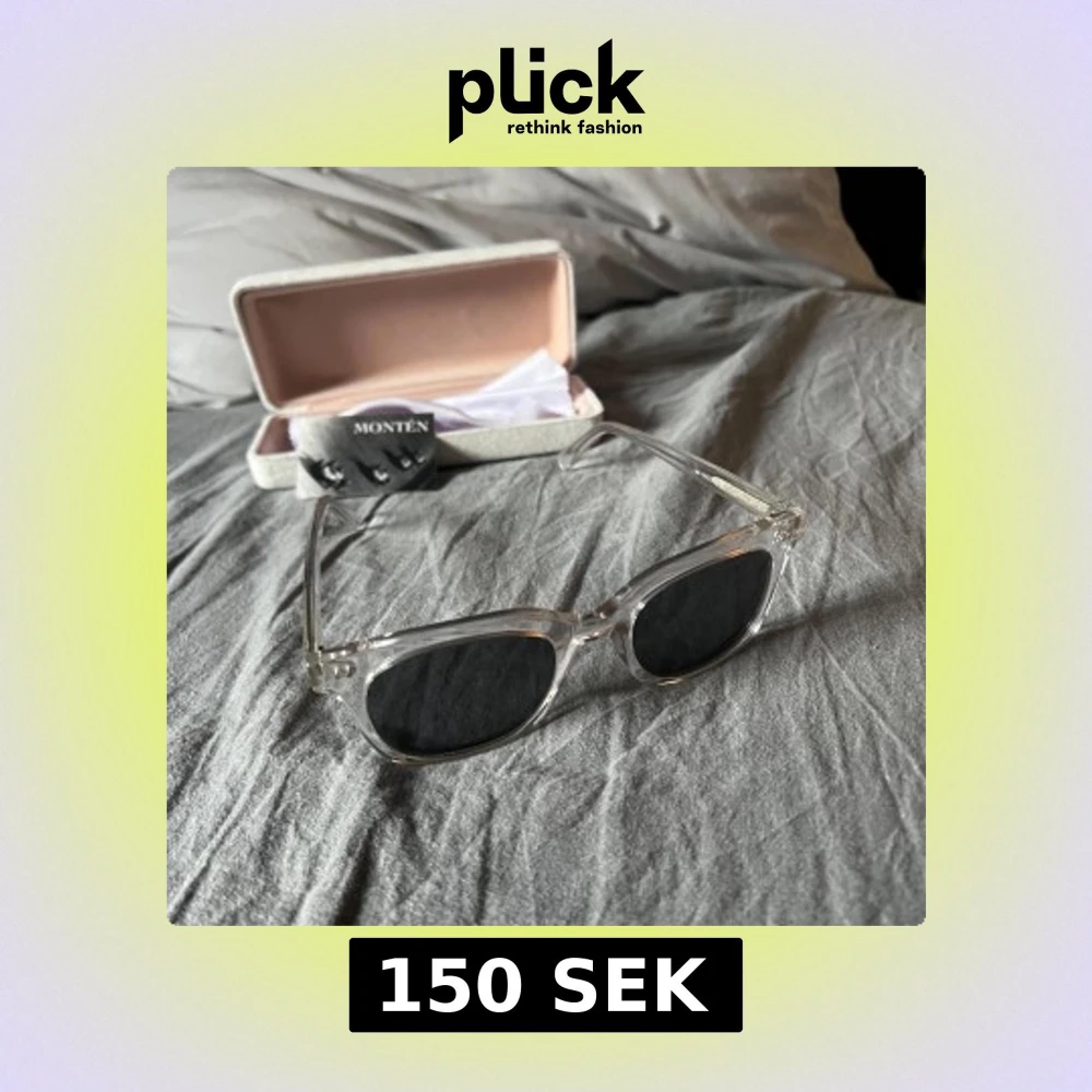 Snygga transparenta solglasögon från Montén med mörka linser. Perfekta för en stilren look. Kommer med ett elegant fodral och putsduk.