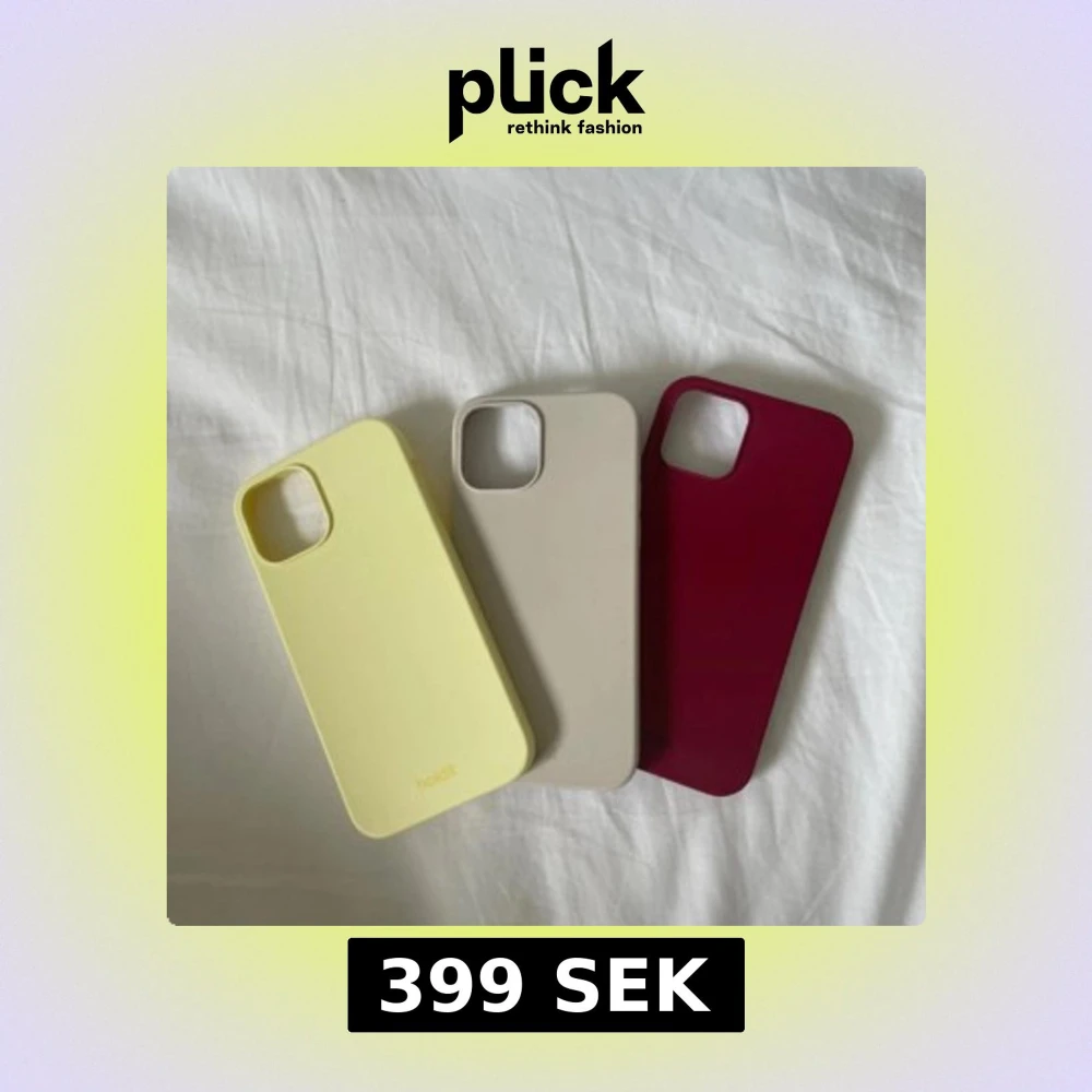 Säljer tre snygga mobilskal från Holdit i olika färger: ett ljusgult, ett beige och ett vinrött. Skalens design är stilren och slät, med mjuk yta och rundade hörn. Perfekt för dig som vill variera looken på din mobil och matcha med din outfit. Passar till IPhone 12