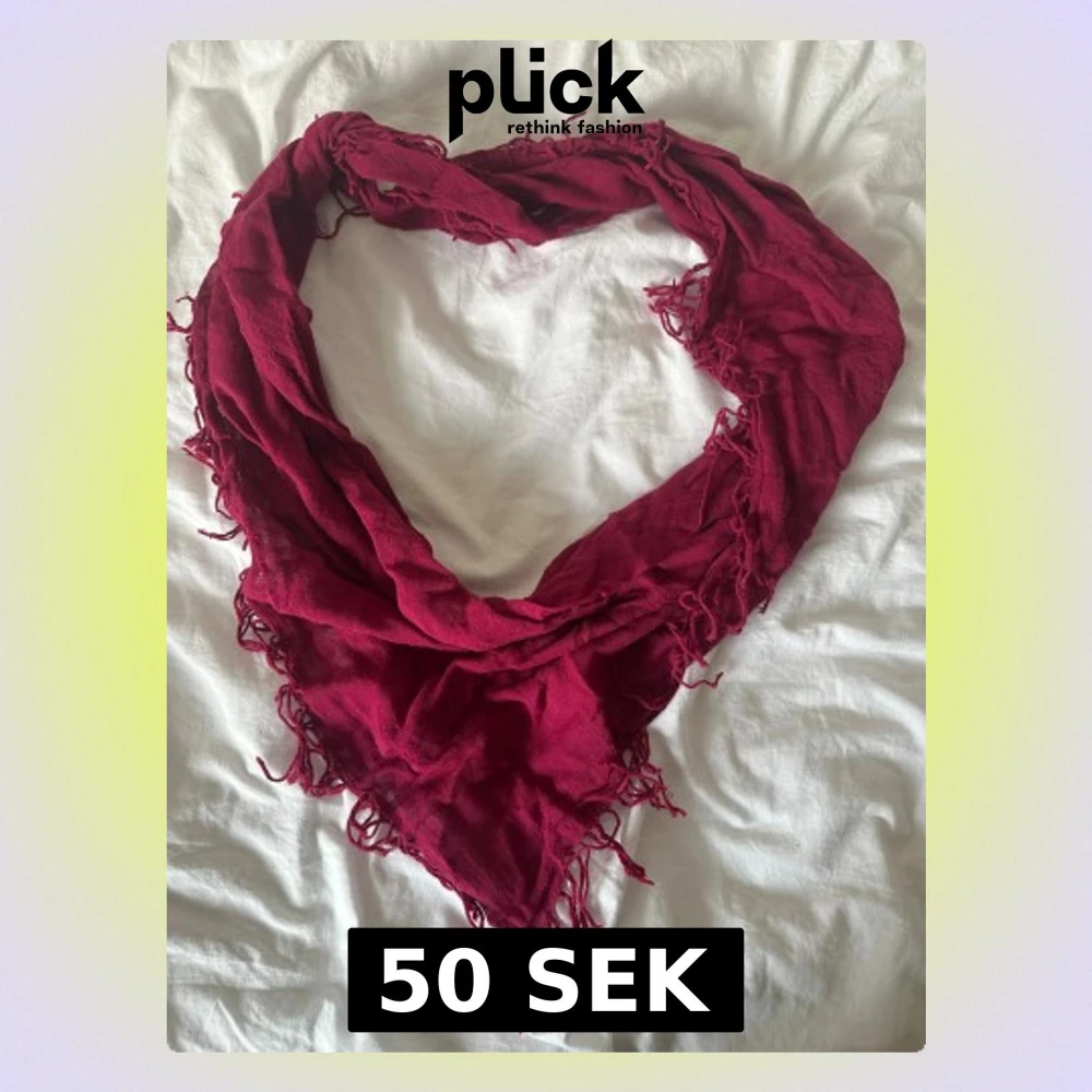Snygg vinröd halsduk i lätt och luftigt tyg, perfekt att slänga över axlarna. Den har en trekantig form och fransar längs kanterna som ger en chill vibe. Materialet är tunt och genomskinligt, vilket gör den enkel att styla på olika sätt