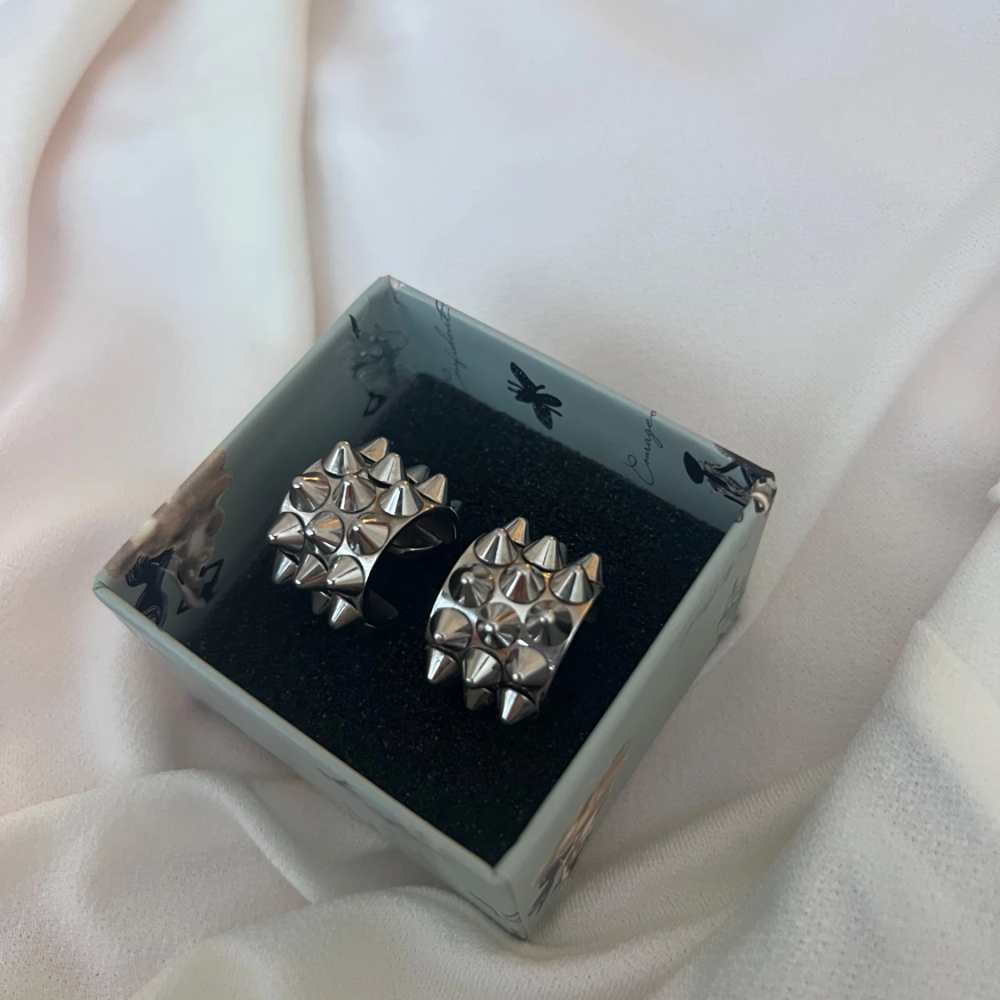 Silvriga örhängen ifrån Edblad med nitar, inte kommit till nån användning.