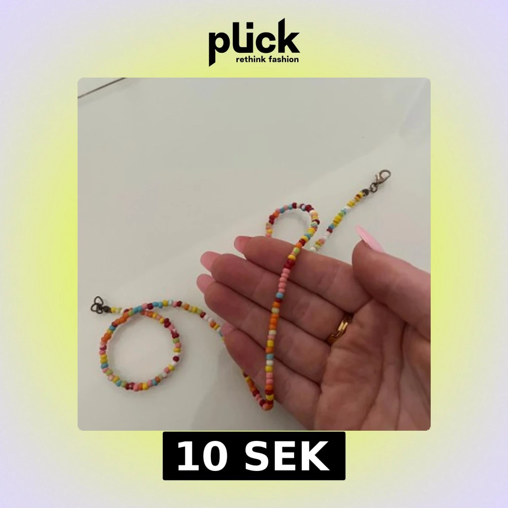 Färgglatt & söt halsband med små pärlor i olika färger som rosa, blå, gul, röd och orange. Halsbandet har ett lekfullt och trendigt utseende med pärlor i rad och metallspänne. Perfekt för dig som gillar färg. Osäker vart den är köpt ifrån men kommer inte mer till användning. Kontakta gärna innan köp!