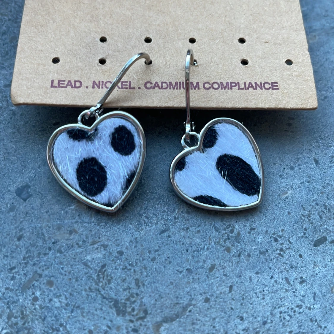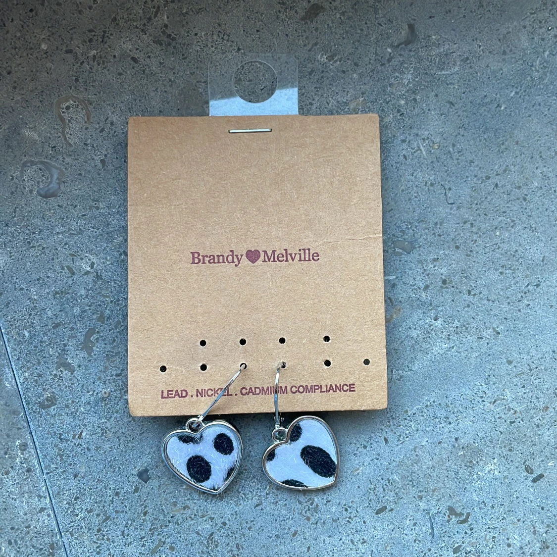 Ett par gulliga hjärt örhängen med ko print på i nyskick. Säljer pga att de inte används. Köptes för 120kr från brandy Melville. Köparen står för frakt på 15kr eller mötas upp. Pris kan diskuteras💞