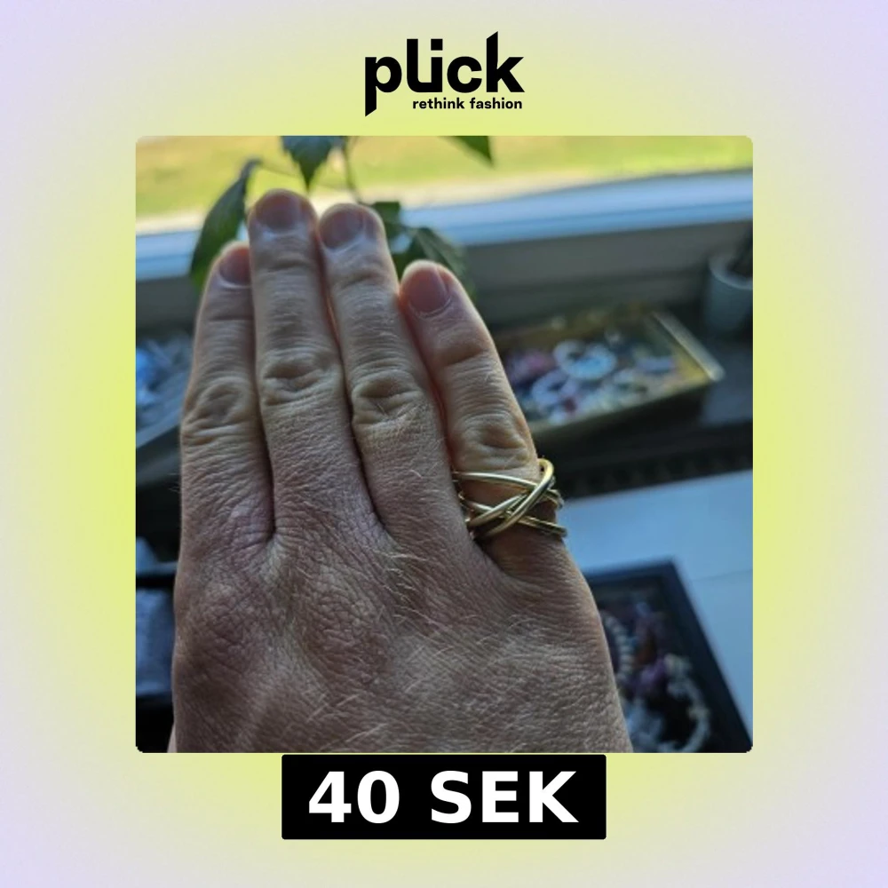 Cool ring i guldton med flera tunna, spiralformade band som korsar varandra. Ringen är handgjort i aluminium och är ca 17 mm i diameter