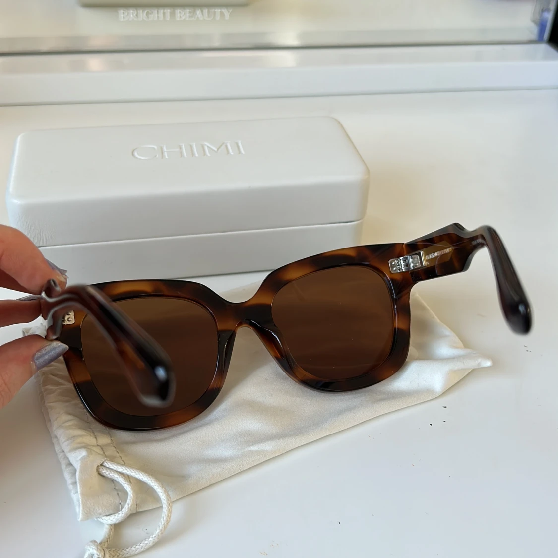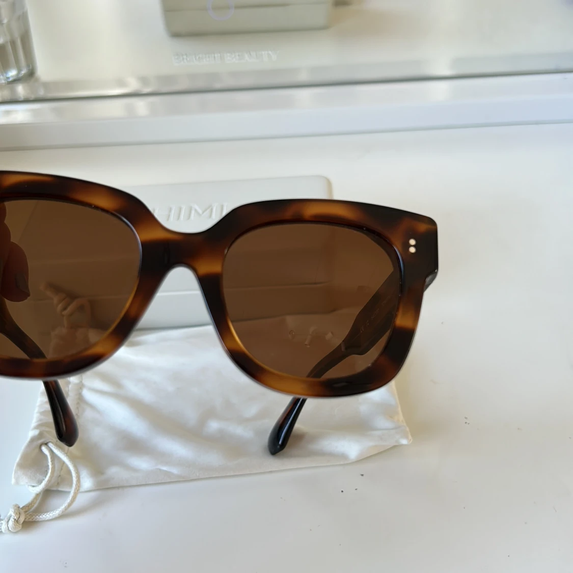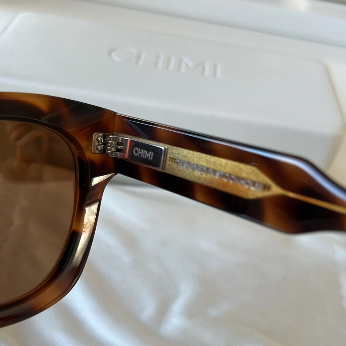 Snygga och trendiga solglasögon från CHIMI i modellen 08 och färgen tortoise. Använda ett fåtal gånger och har inga repor eller skador.
