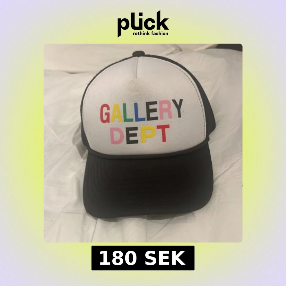 Snygg truckerkeps från Gallery Dept. med vit front och svart mesh baktill. Framsidan har färgglad text i rött, gult, grönt, blått, svart och rosa. Justerbar snapback och broderade detaljer på insidan. Perfekt för en streetwear-look.