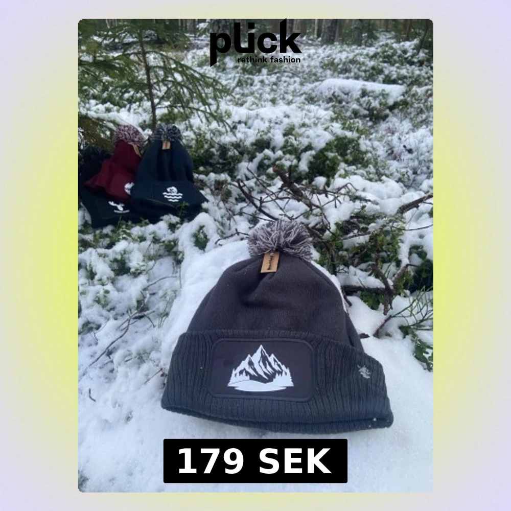 En mörkgrå mössa med vit tryck på, trycket är ett berg. Helt oanvänd då vi själv har tryckt den. Mössan samt trycket är av bra kvalitet.
