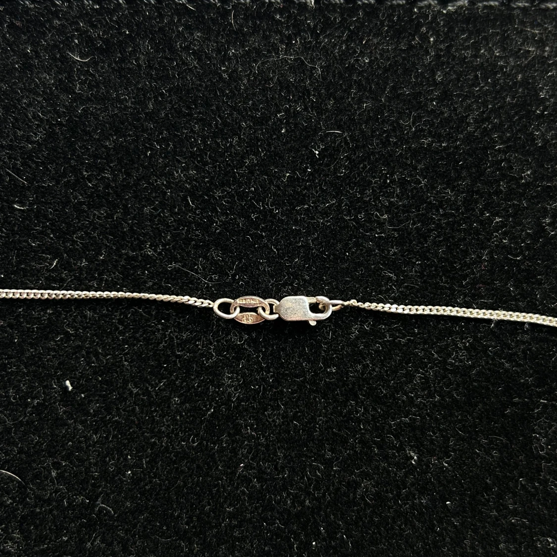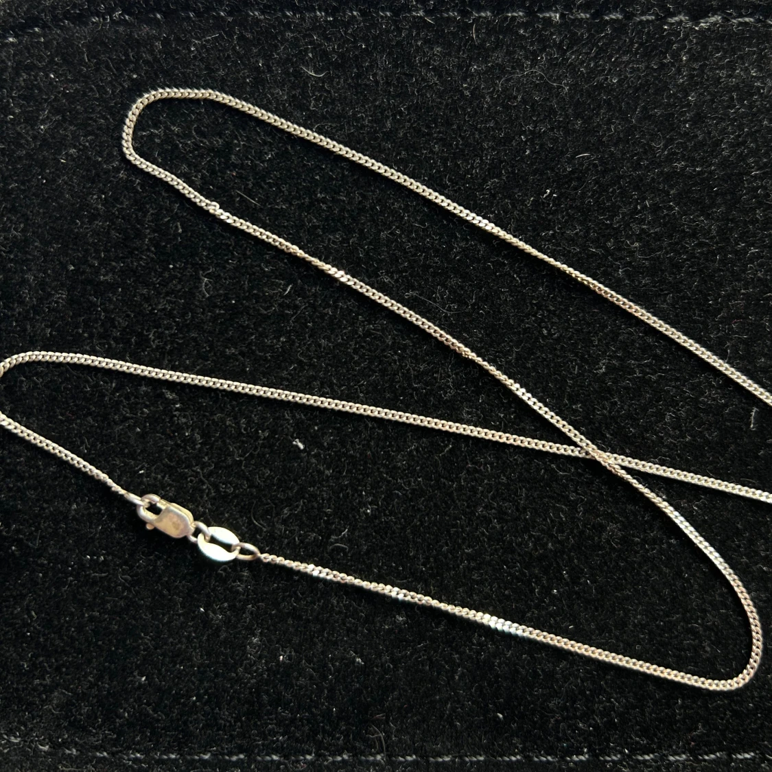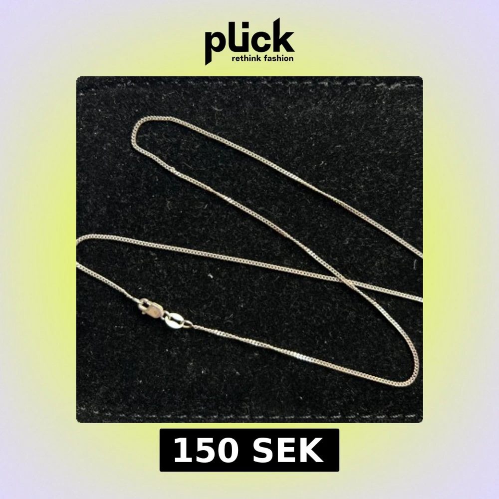 Säljer ett stilrent och tunt halsband i äkta silver med klassisk kedja och smidig karbinhake. Perfekt att bära som det är eller kombinera med ett hängsmycke. Enkelt och tidlöst smycke som passar till många olika stilar. 45cm