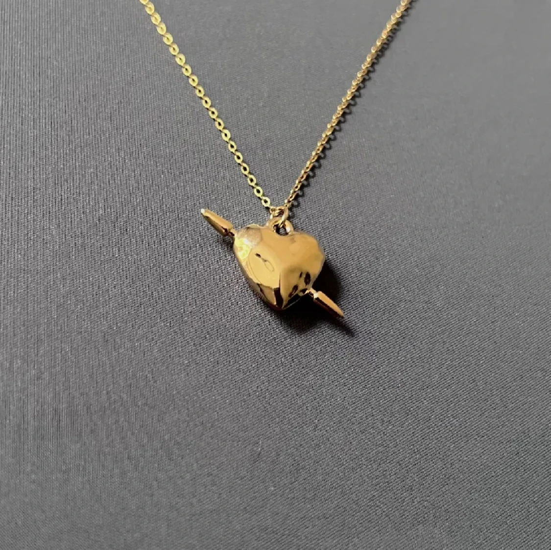 Gold-plated, rust- and nickel-free stainless steel necklace with a subtle heart pendant. 40 + 5 cm adjustable chain