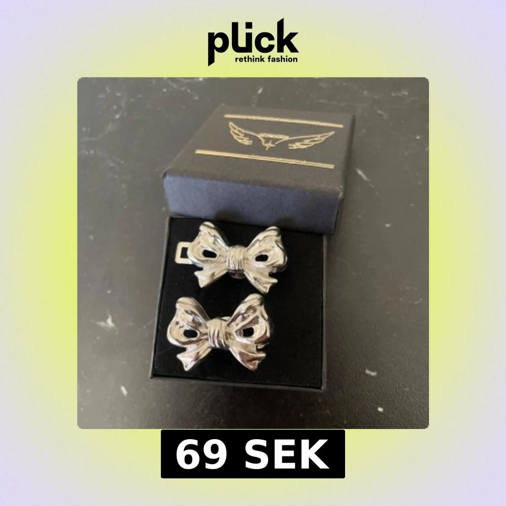 Snygga Clip i form av rosetter som man blunder ihop de för att få mindre midja på byxorna, tillverkade i blankt silvrigt material. De har en cool och trendig design som verkligen sticker ut. Perfekta för dig som vill ha något unikt och lekfullt i smyckeskrinet.
