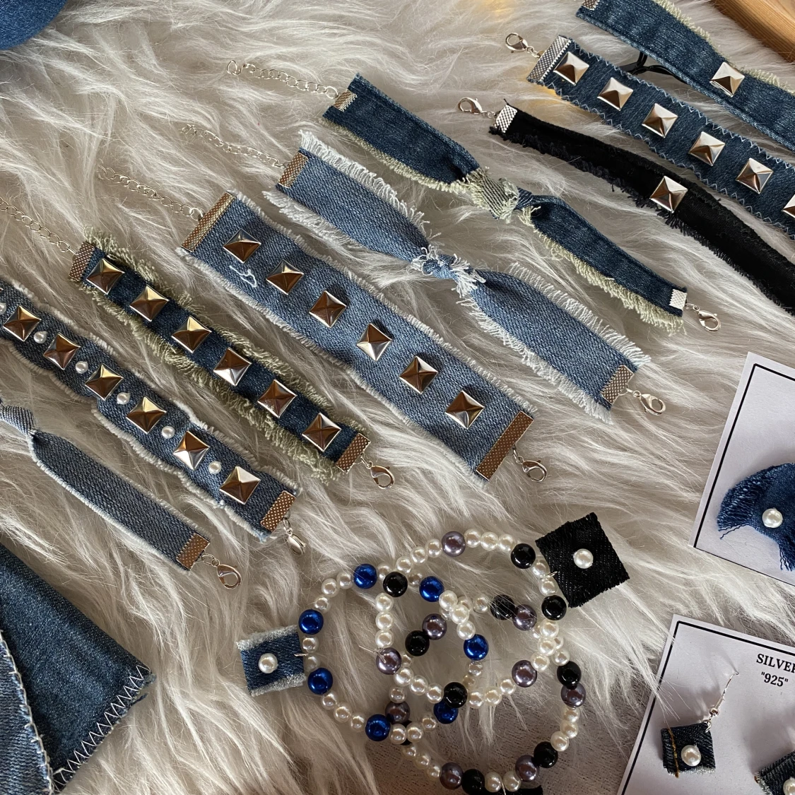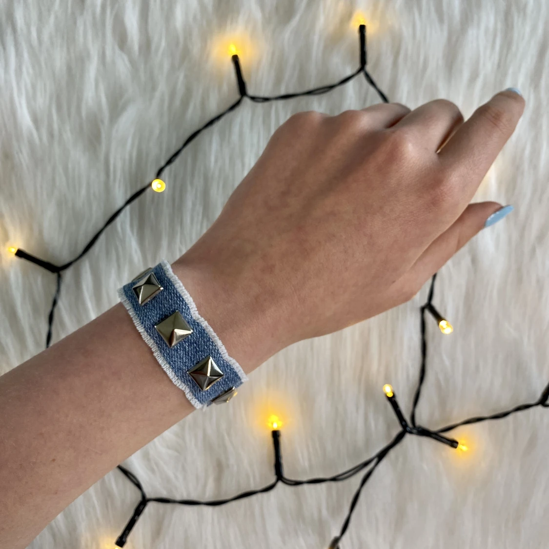 Justerbara jeans armband med nitar i olika modeller, kontakta mig vid köp här eller köp via Instagram: @stellsdesign