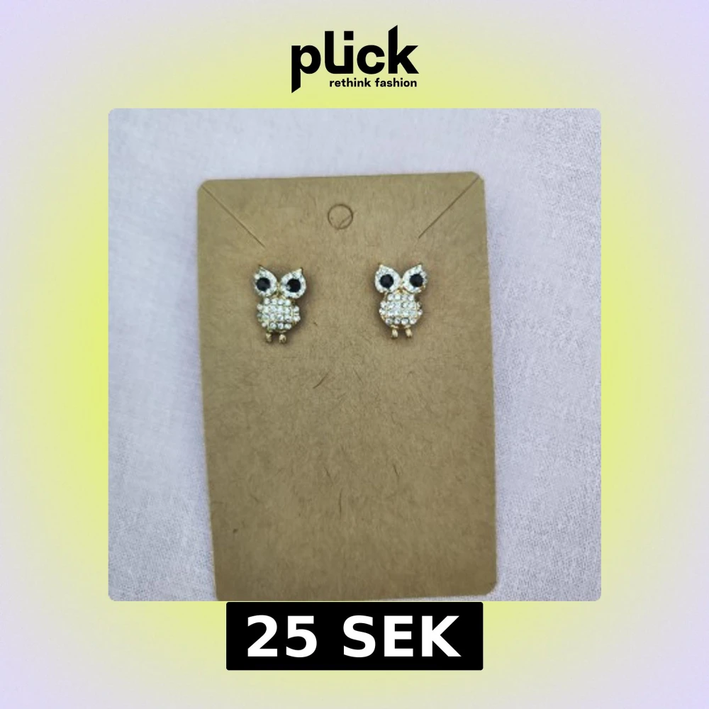 Charmiga uggleformade örhängen dekorerade med glittrande strass. De har en fin kombination av guld och svart som ger en elegant touch. Perfekta för att lägga till lite extra bling till din outfit. Oäkta.