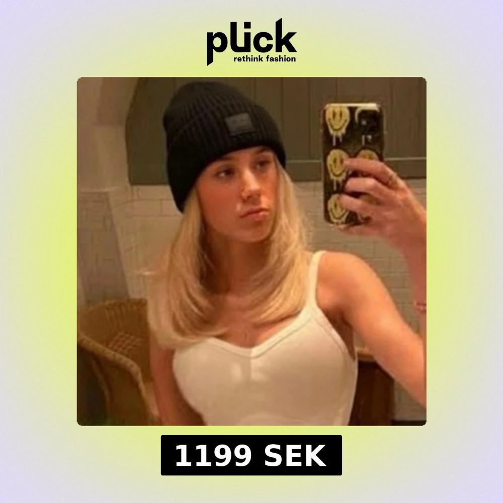 Säljer en svart ribbstickad mössa från Acne Studios med uppvikt kant och diskret logopatch framtill. Klassisk och enkel design som passar till allt, perfekt för kalla dagar. Materialet är mjukt och håller värmen bra.