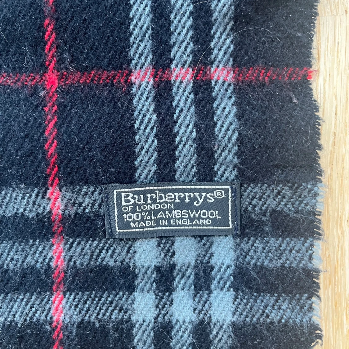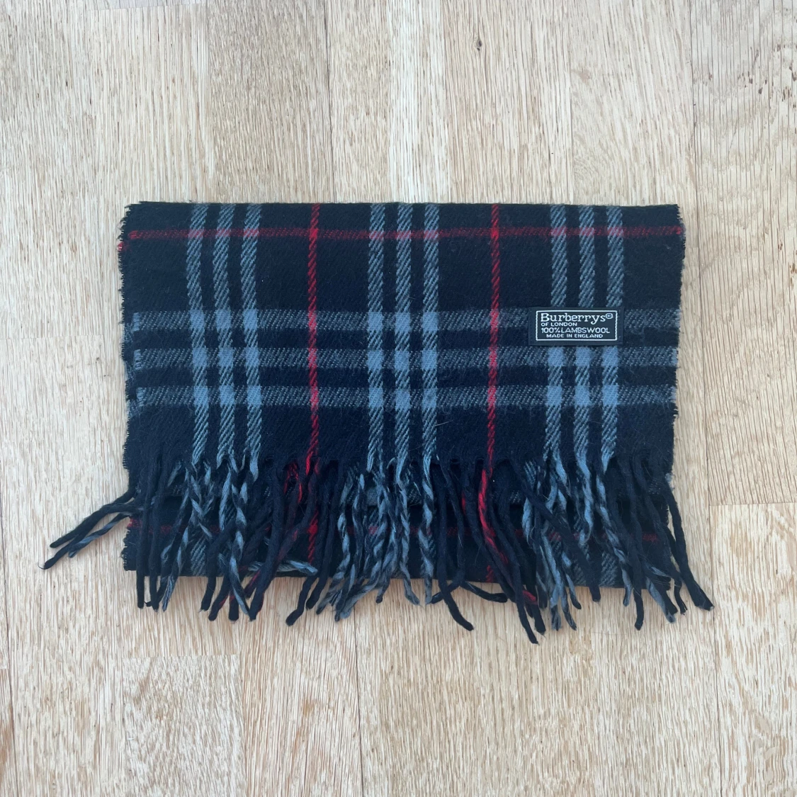 Vintage burberry halsduk i ull som har den snygga kombon av svart, grått och de klassiska röda detaljerna. Halsduken är i ett mycket bra skick utan hål, defekter eller fläckar (9/10 skick). Perfekt för att uppgradera din outfit med en snygg accessoar.