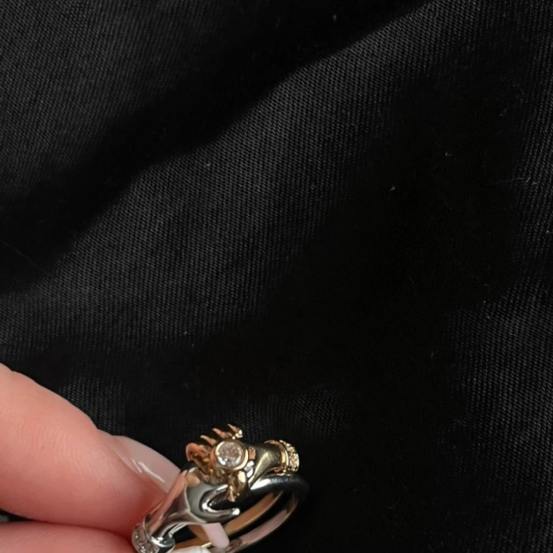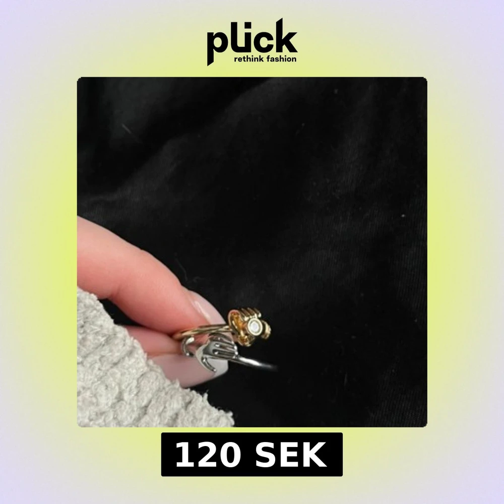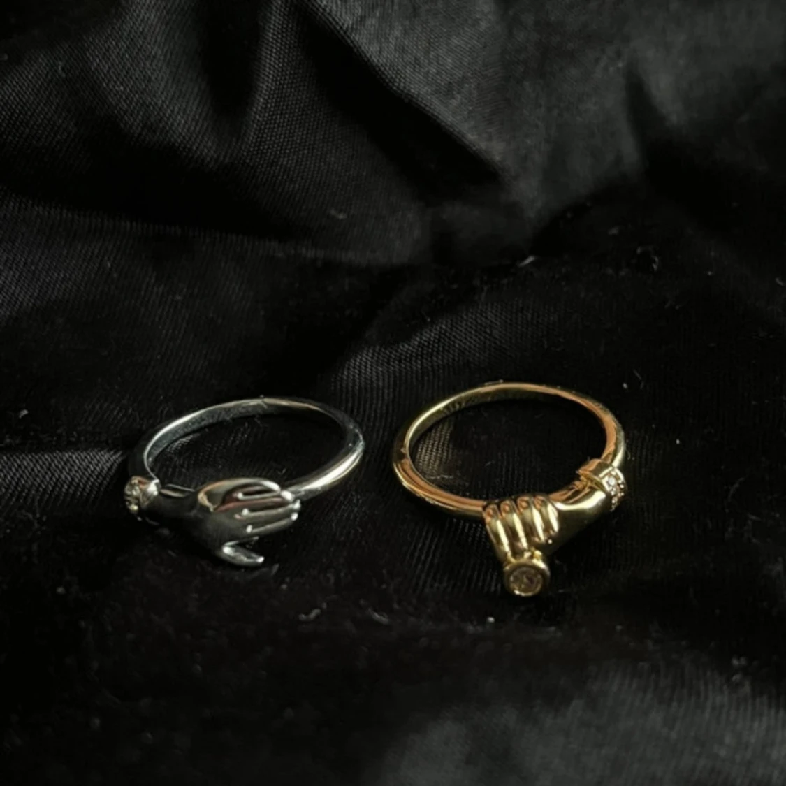 Två coola ringar i silver och guld med handformad detalj framtill. Båda ringarna har en liten rund sten som ger extra bling. Perfekt för dig som vill sticka ut med accessoarer som har en edgy vibe och snygga detaljer.