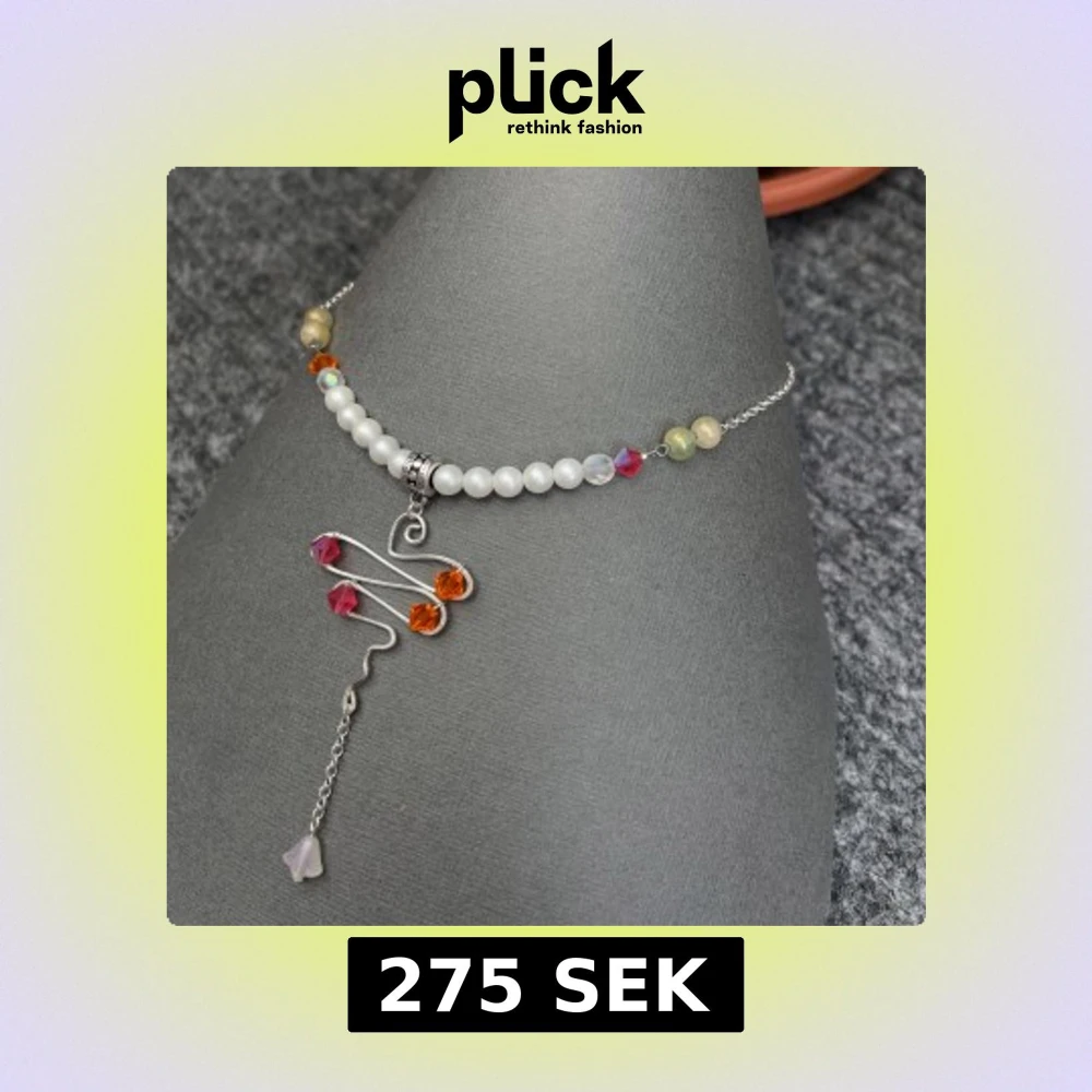 Handgjort halsband i silverplätering med undantag för själva trollsländan som är i non-tarnishbehandlad koppartråd (detta innebär att tråden inte ska oxidera/ändra färg)🌼Smyckad med tjeckiska biconepärlor i glas från Preciosa i färgerna ”Indian Pink” och ”Sun”; övriga pärlor är vaxade, krackelerade eller mattade pärlor i glas. Flera pärlor har en AB-behandlad yta vilket ger en härlig lyster. Jag gör endast ett exemplar av varje design så du blir helt ensam om att bära detta häftiga halsband!😊