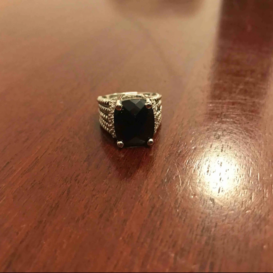 Súper snygg dipped in silver ring med svart sten. Helt ny.