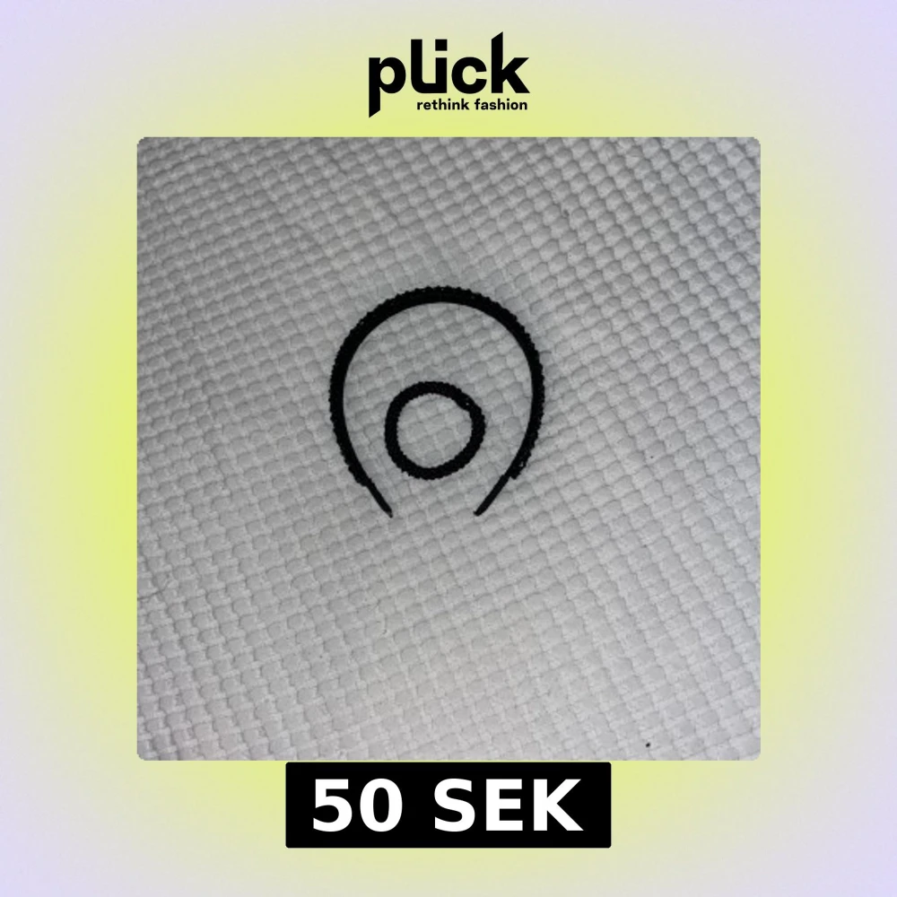 Säljer ett svart diadem med flätad design och matchande svart hårsnodd. Diademet har en enkel och stilren form som passar till många looks. Båda är gjorda i syntetmaterial och har en matt finish. Perfekt för att fixa frisyren snabbt och snyggt.