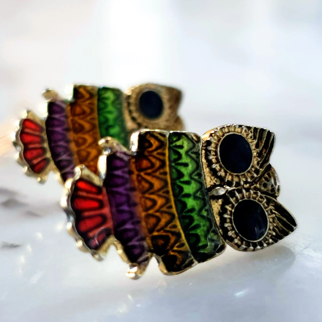 Flerfärgade uggle örhängen. Super söta örhängen i regnbågensfärger. Lätta och bekväma. Köpta för 200kr. Kontakta vid intresse🌈🦉
