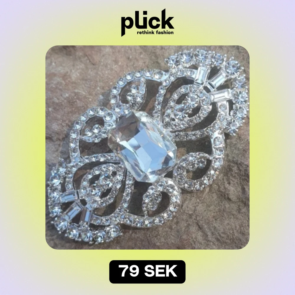 Den här broschen har transparenta kristaller mått är ca 6.5 × 3.8 cm.